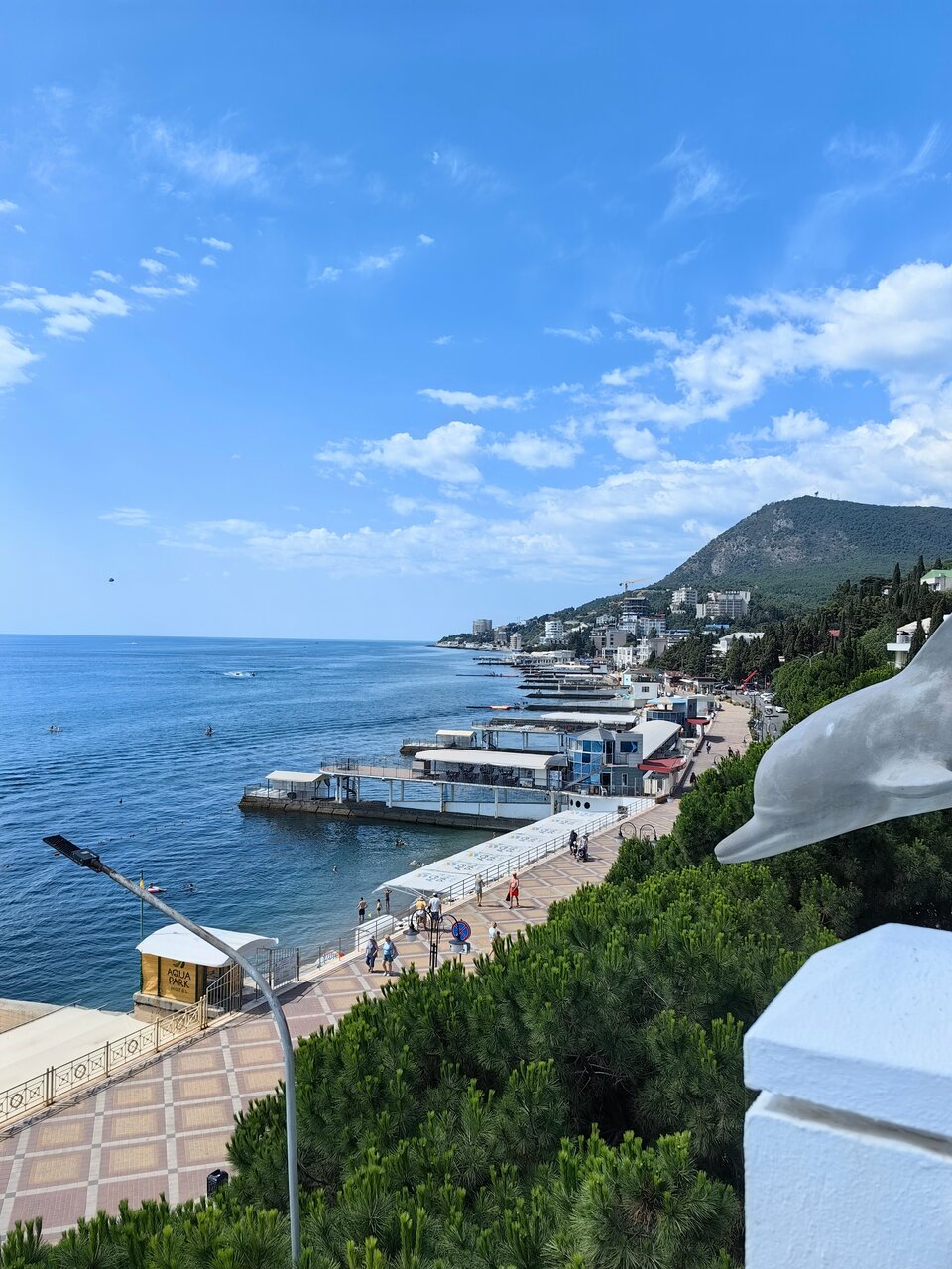 Впервые посетили Алушту, находимся под впечатлением от красоты и атмосферности этого места. В 30м оборудованный пляж, в номерах чистота и простор. Вид из панорамных окон невероятно красивый. Смело рекомендуем семьям, парам и самостоятельным туристам!)