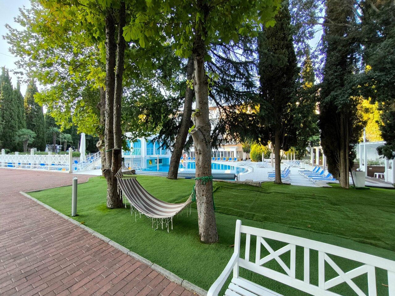 Отличный семейной отель. Очень разнообразное, вкусное меню. Много развлечений для детей. Большая парковая территория. Несколько искусственных водопадов, прудик с уточками и лебедями, контактный зоопарк. Есть личный пляж, к которому каждые 15 минут курсирует электрокар. По всей территории стоят самокаты и велосипеды — можно брать и кататься. Открытый подогреваемый бассейн, рядом сауна. Очень приветливый персонал, хорошая организация. Вечером игры, кино В процессе отдыха можно зарабатывать местную валюту портомарики и потом обменять её на подарки! Детям очень нравятся такие моменты! А ещё это один из немногих отелей, где рады вашим питомцам! Для них здесь тоже много чего организовано и продумано! Однозначно рекомендую!