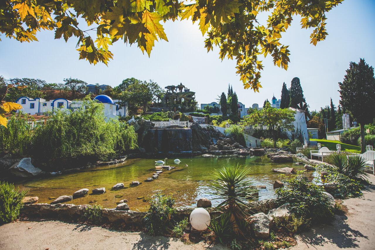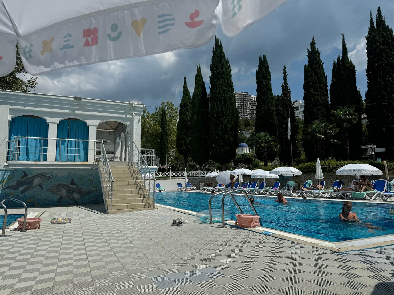 Очень понравился отель, частичка турецкого сервиса в Крыму. Отличная территория: есть подогреваемый бассейн, баня, мини-зоопарк, водопады, красивая растительность. Пришли на бассейн, но не было пустых лежаков, спасатель сразу же установил дополнительные. На ресепшене при заселении было угощение в виде шампанского. На протяжении дня есть различные развлекательные мероприятия как для деток, так и для взрослых: мастер-классы, квесты, дискотека для деток и для взрослых. Единственное удивило, что в апартаментах нет посуды, хотя печка есть. Расположение удобное. Цены в лобби отличные, а если сходите на встречу с менеджером, то дадут еще скидку в 15%. Отель к отдыху однозначно рекомендую.
