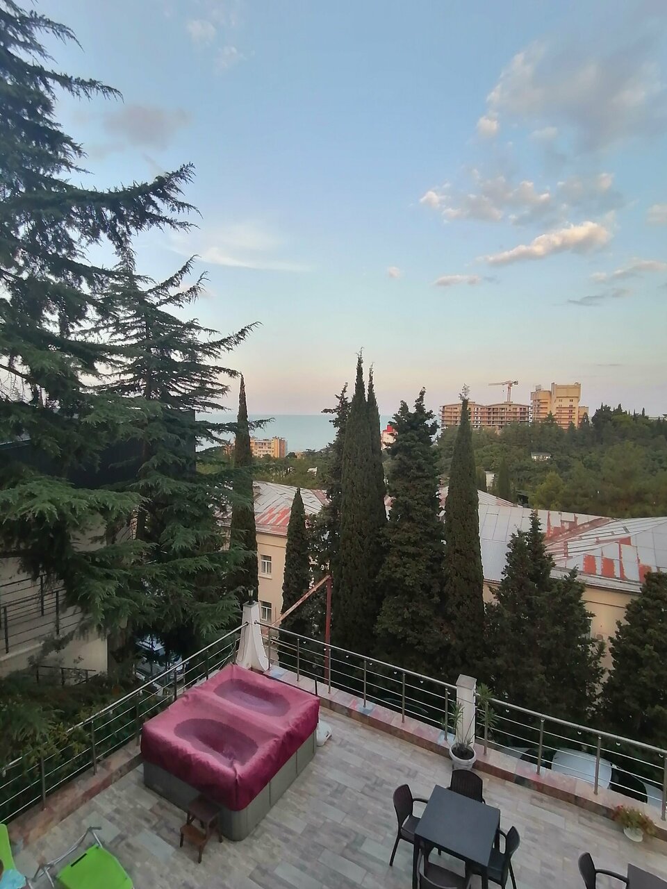 Прекрасный отель! Чисто, уютно. Все необходимое есть. Есть джакузи, на крыше отеля бассейн) До моря 10 минут по территории санатория Алушта, не замечаешь, как оказываешься на пляже. А какие виды открываются))))