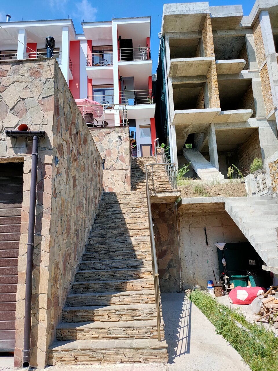 Персонал внимательный.Номера чистые,новые где апартаменты.У апартаментов свой отдельный бассейн (ни как на фото,без открытого вида)но зато людей ни много,чистый,дети накупались,нанырялись. Дорога на море занимает мин 5, обратно в гору и по ступенькам подольше и потруднее))