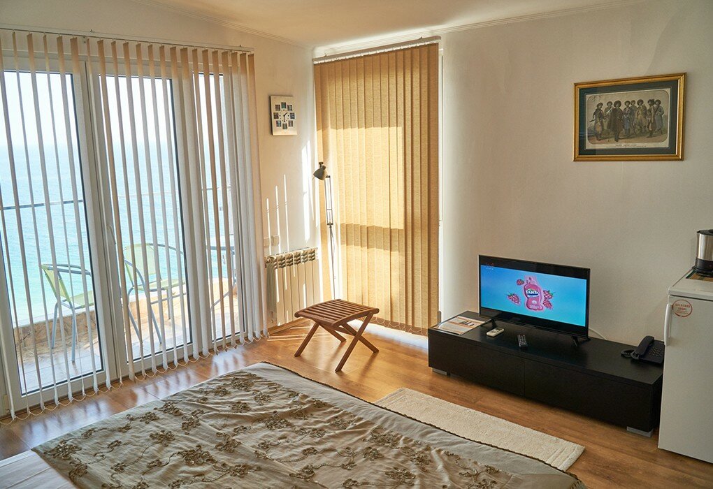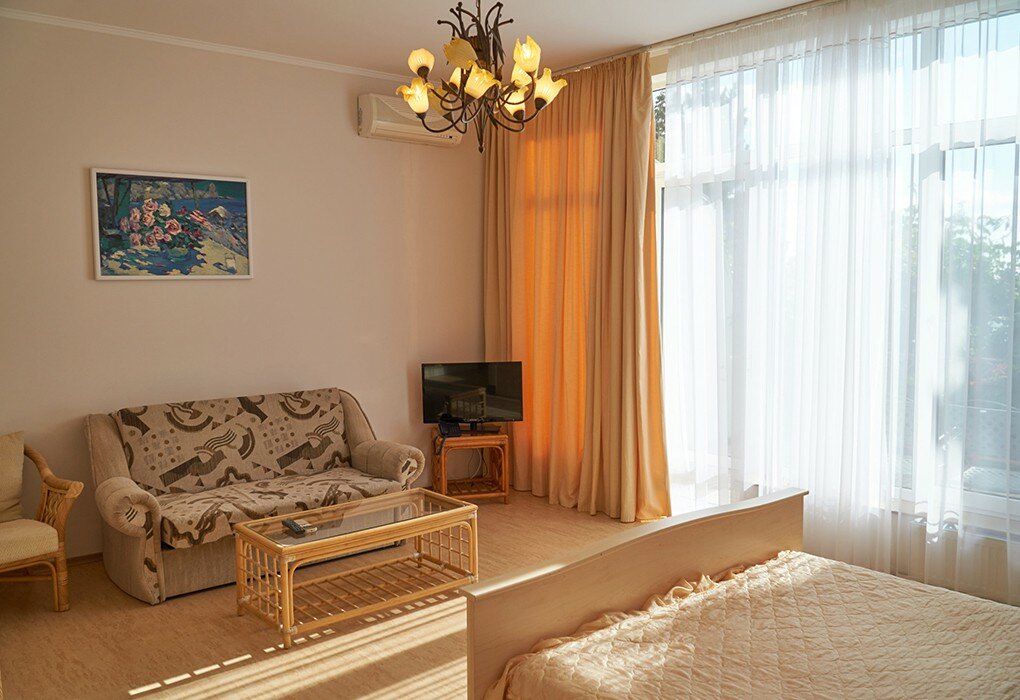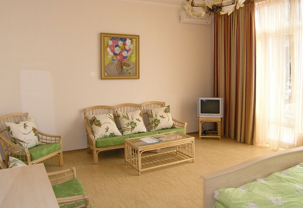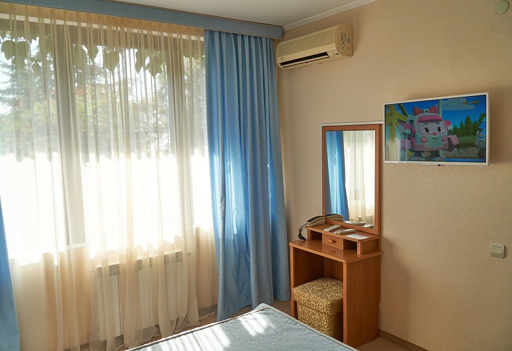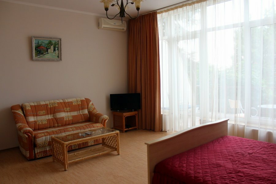 Очень приличное место для Крыма. Большие номера, расположение на территории Советского санатория с шикарным парком, что не зарактерно для Алушты. Автобус до пляжа. Приличные завтраки с зеленью.
