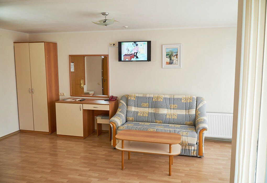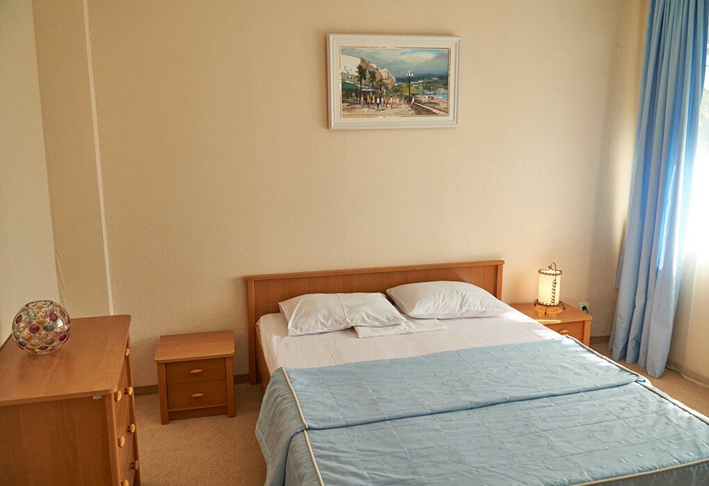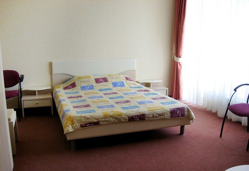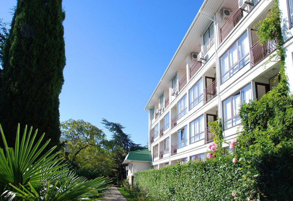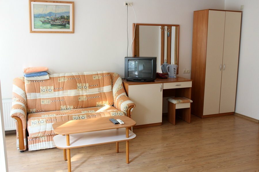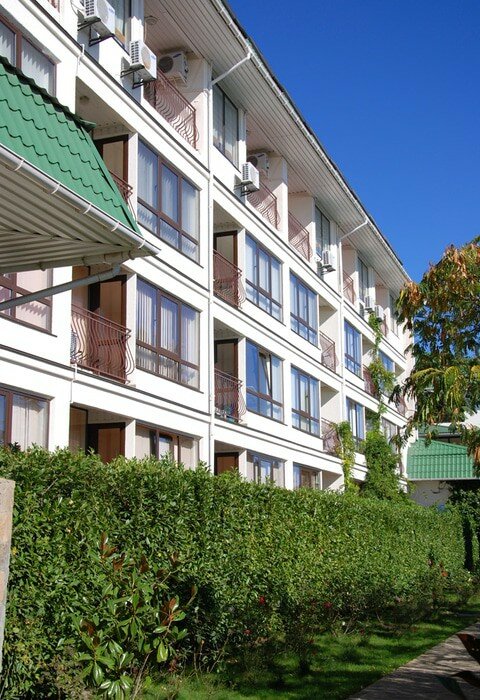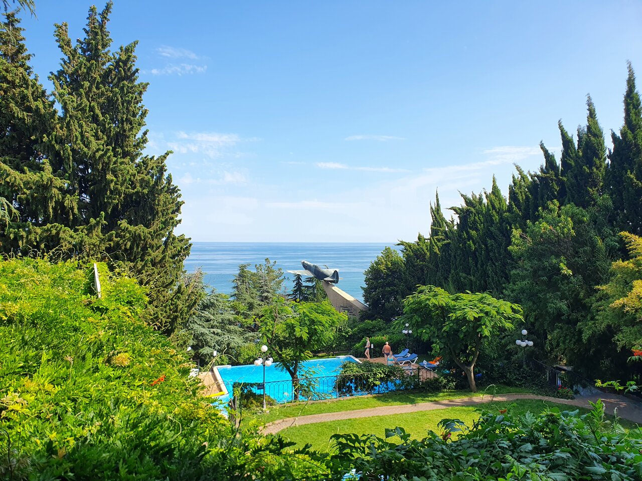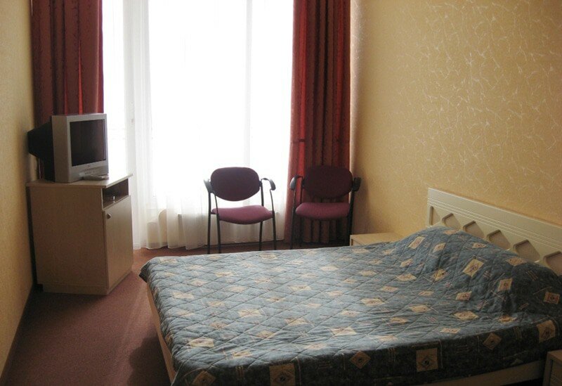 В номерах чисто, большая гостиница. На территории есть бассейн, кафе(по вечерам там показывают кино). Прекрасная столовая(кормят на убой) . По расписанию от гостиницы ездит автобус до пляжа (у гостиницы свой пляж, каждому выделяют шезлонг). Так же можно по огромному количеству ступенек дойти самостоятельно до пляжа. У гостиницы красивая ,ухоженная территория.
