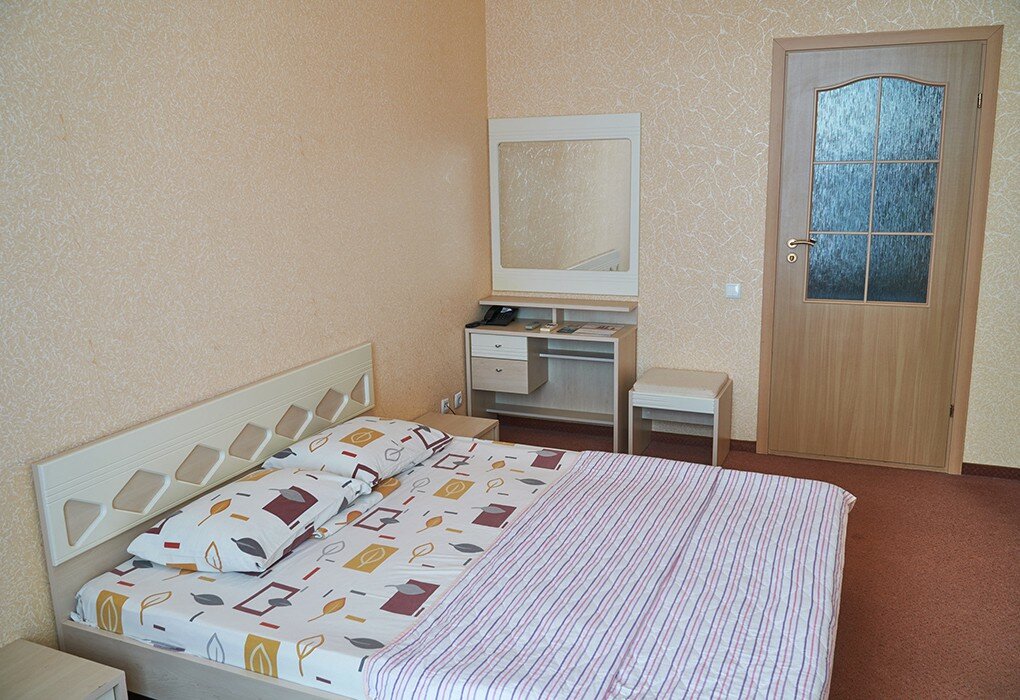 В номерах необходимо сделать ремонт: полочки в ванной сломаны, плафона у нас на люстре не было, мебель с дефектами. Но волшебный ‘лесной’ воздух. Тишина. Отлично кормят по качеству, только не хватает десертов. Фрукты только на завтраке. Из питья в обед только чай, компот и сырая вода.