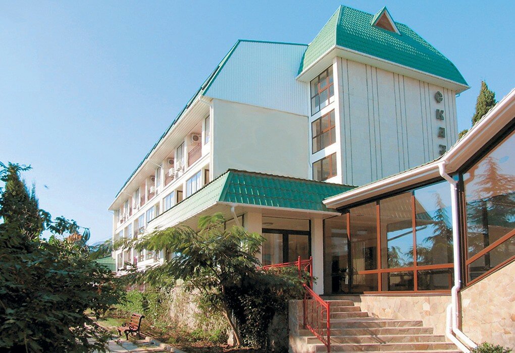 Гостиница «Сказка» (Алушта, ул. Чатырдагская, 2) — трёхзвёздочный отель с круглосуточным обслуживанием, расположенный в 215 м от моря. К услугам гостей: номера с кондиционером, Wi-Fi и телевизором, три бассейна (крытый, открытый, подогреваемый), ресторан, кафе, бар, spa-зона, сауна, хаммам, тренажёрный зал и детский клуб. На территории — собственный галечный пляж, летняя веранда, настольный теннис и бильярд. Предоставляется трансфер, бесплатная парковка и питание (завтрак, полупансион, полный пансион). Дата постройки — 2004 год, реконструкция — 2012.