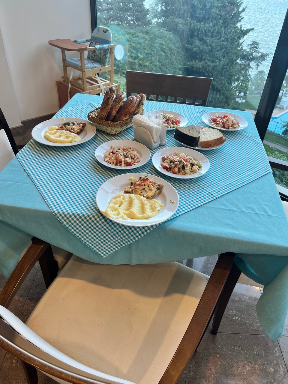 Отдыхали в Сентябре, нет такого, что бы хоть что то понравилось в этом отеле. Персонал не приветлевый, администратор на ресепшене не понимает и не знает что он должен делать, официанты ходять руки в брюки с угрюмыми лицами. Жили в номере полулюкс, а это битая плитка, отклеивающиеся обои, затертая мебель, не работающий телевизор. Детской площадки, как таковой нет.Единственный плюс это вечерний кинотеатор для детей и красивый вид из столовой.Оплата 5500 в день за все это слишком высокая, не советую.