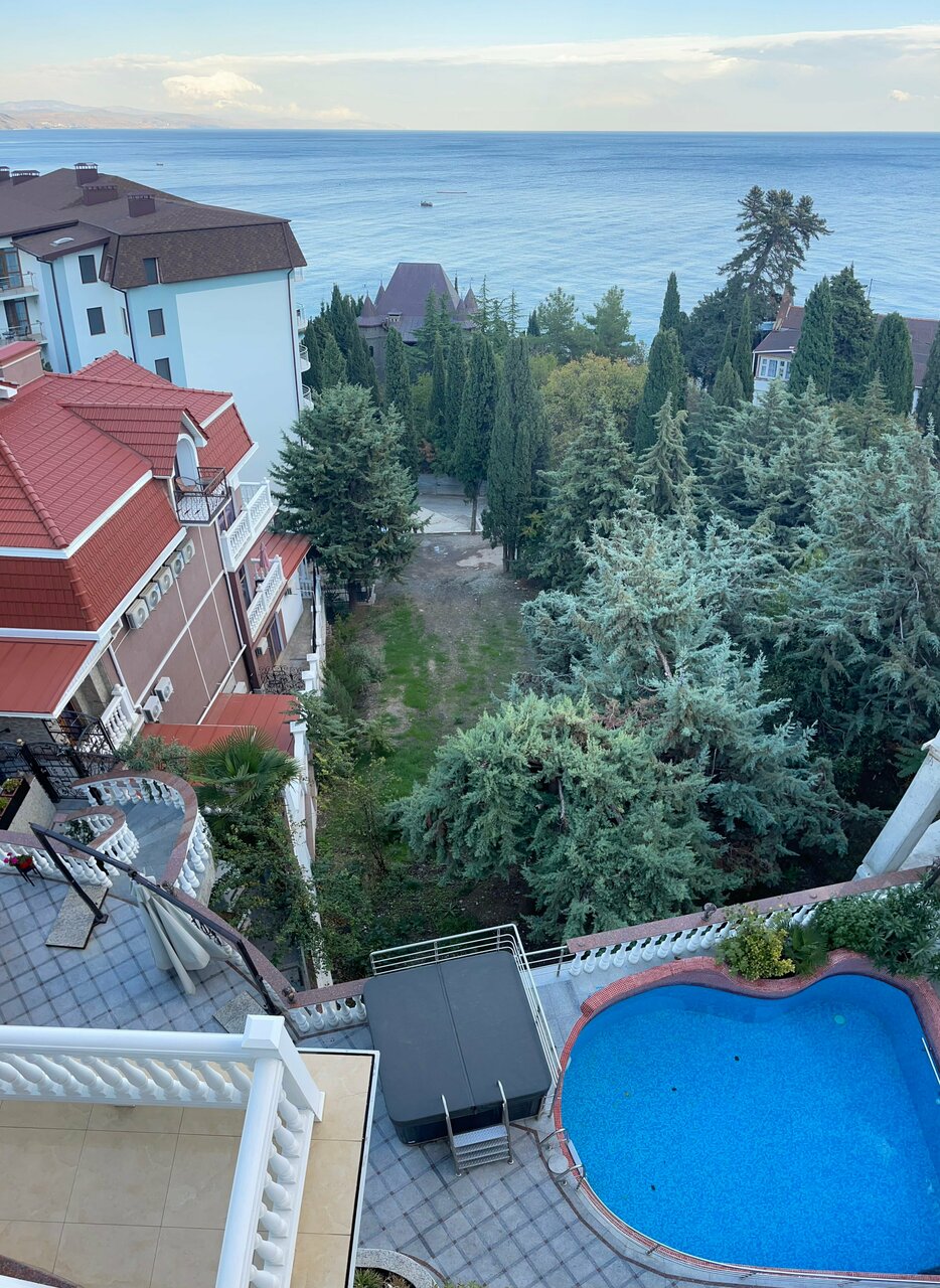 Двухкомнатная пятиместная студия с видом на море, большими панорамными окнами и отдельным выходом к бассейну, в проживание включен завтрак, индивидуальное посещение СПА, бесплатное пользование мангальной зоной, уборка производится ежедневно.
