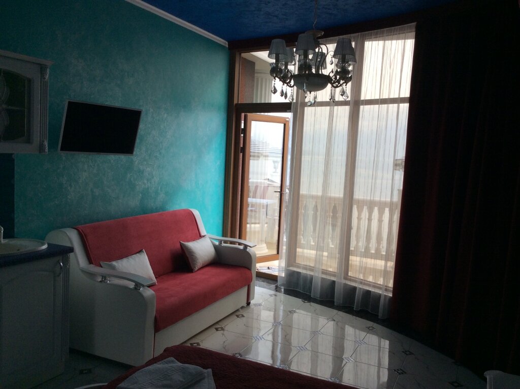 Трехместная студия с видом на море и большим балконом, в проживание включен завтрак, индивидуальное посещение СПА, бесплатное пользование мангальной зоной, уборка производится ежедневно.