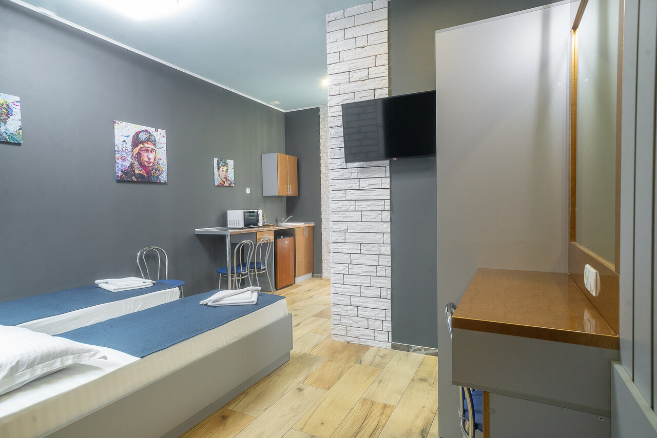 Двухместная студия с видом на горы, в проживание включен завтрак, персональное посещение СПА, бесплатное пользование мангальной зоной, уборка производится ежедневно.