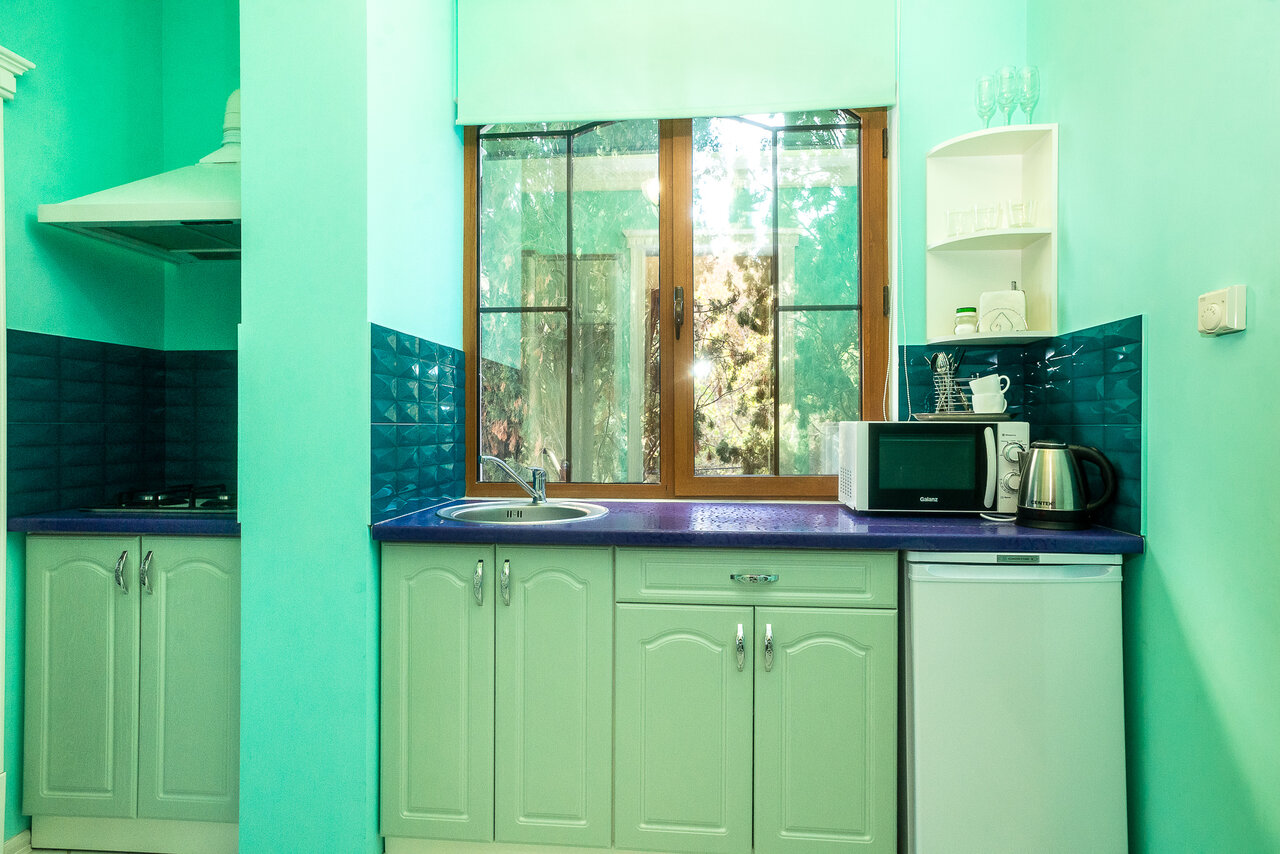 Двухкомнатная студия с видом на море и балконом, в проживание включен завтрак, персональное посещение СПА, бесплатное пользование мангальной зоной, уборка производится ежедневно