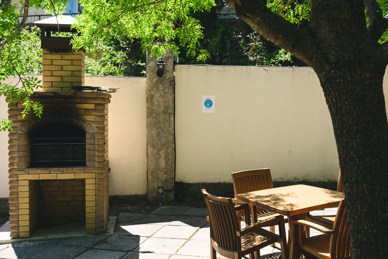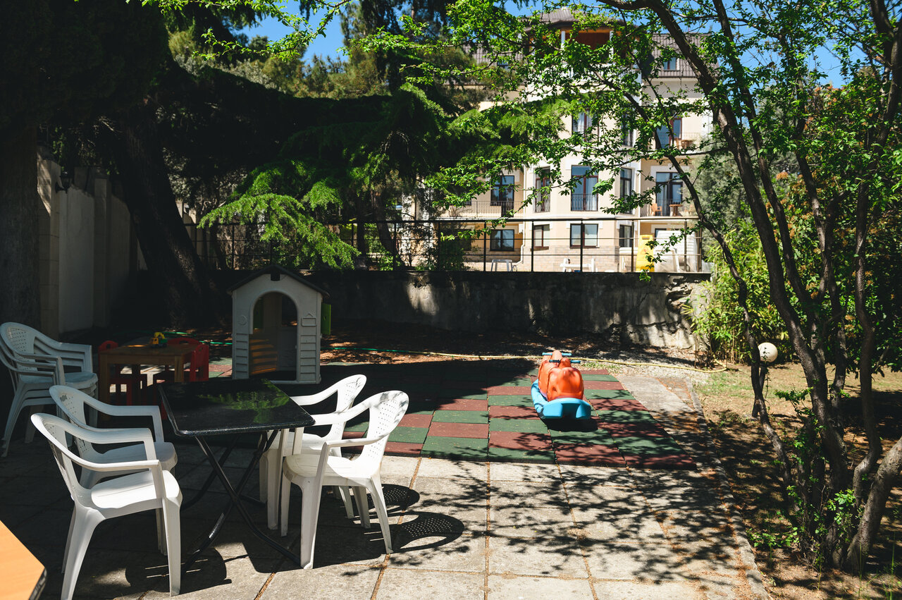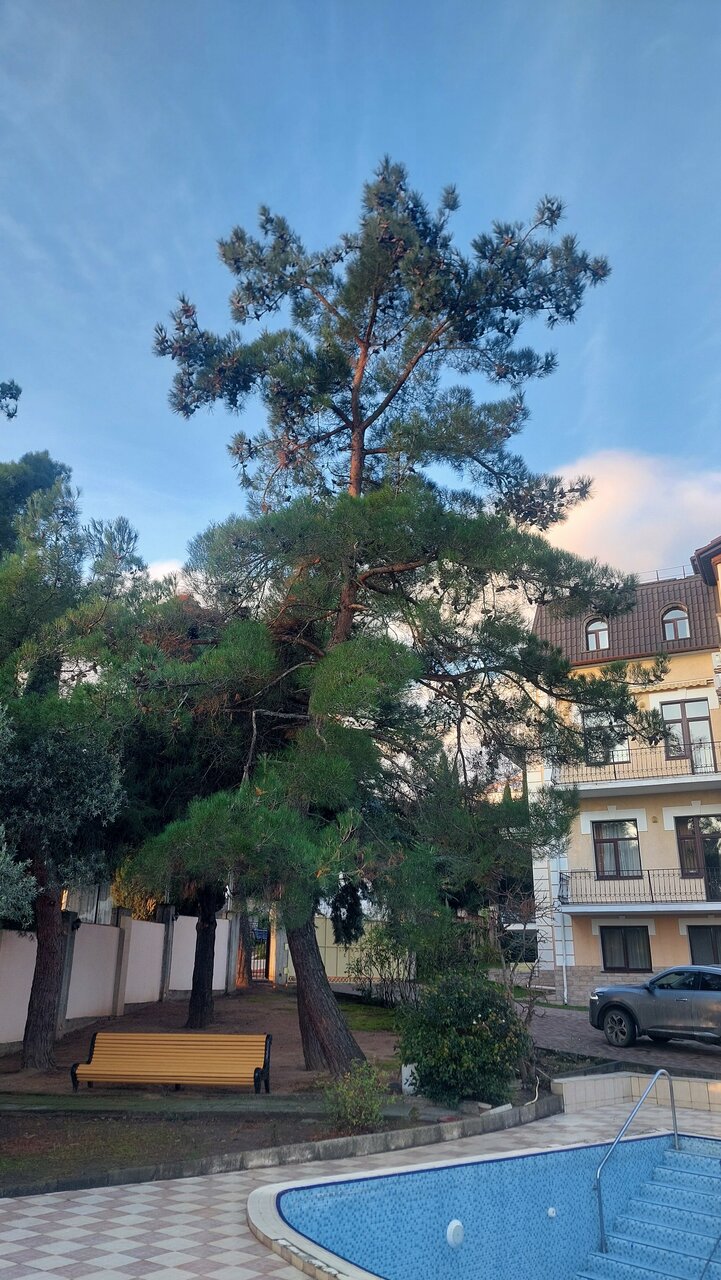 - Ухоженная территория с кедрами и кипарисами.; Душевная атмосфера.; Красивое и тихое место.; Парковка на территории.; Детская площадка.