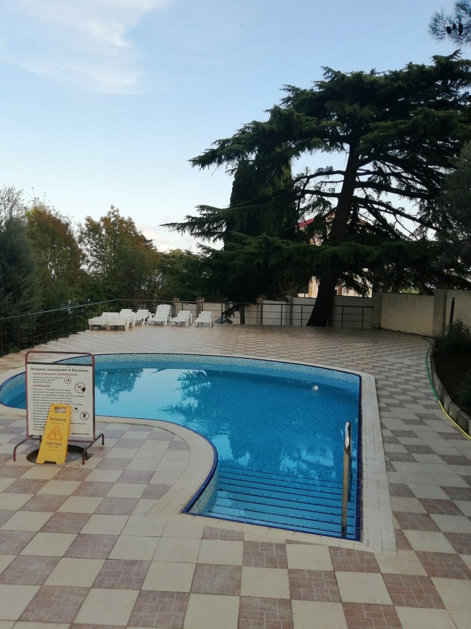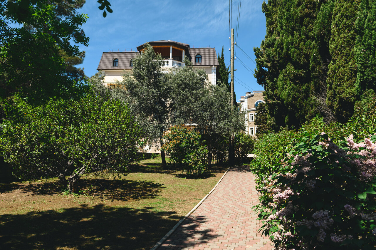 - Ухоженная территория с кедрами и кипарисами.