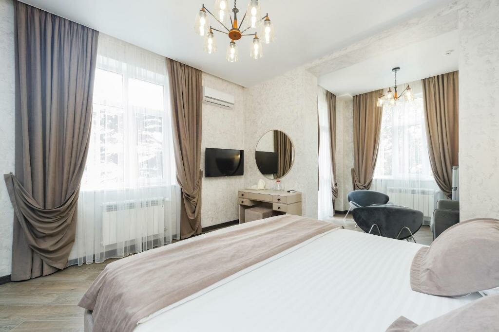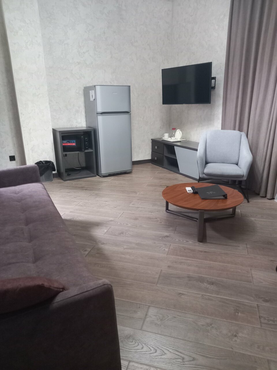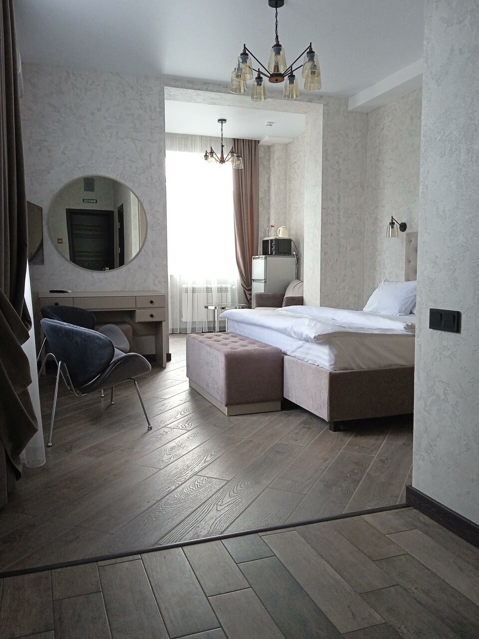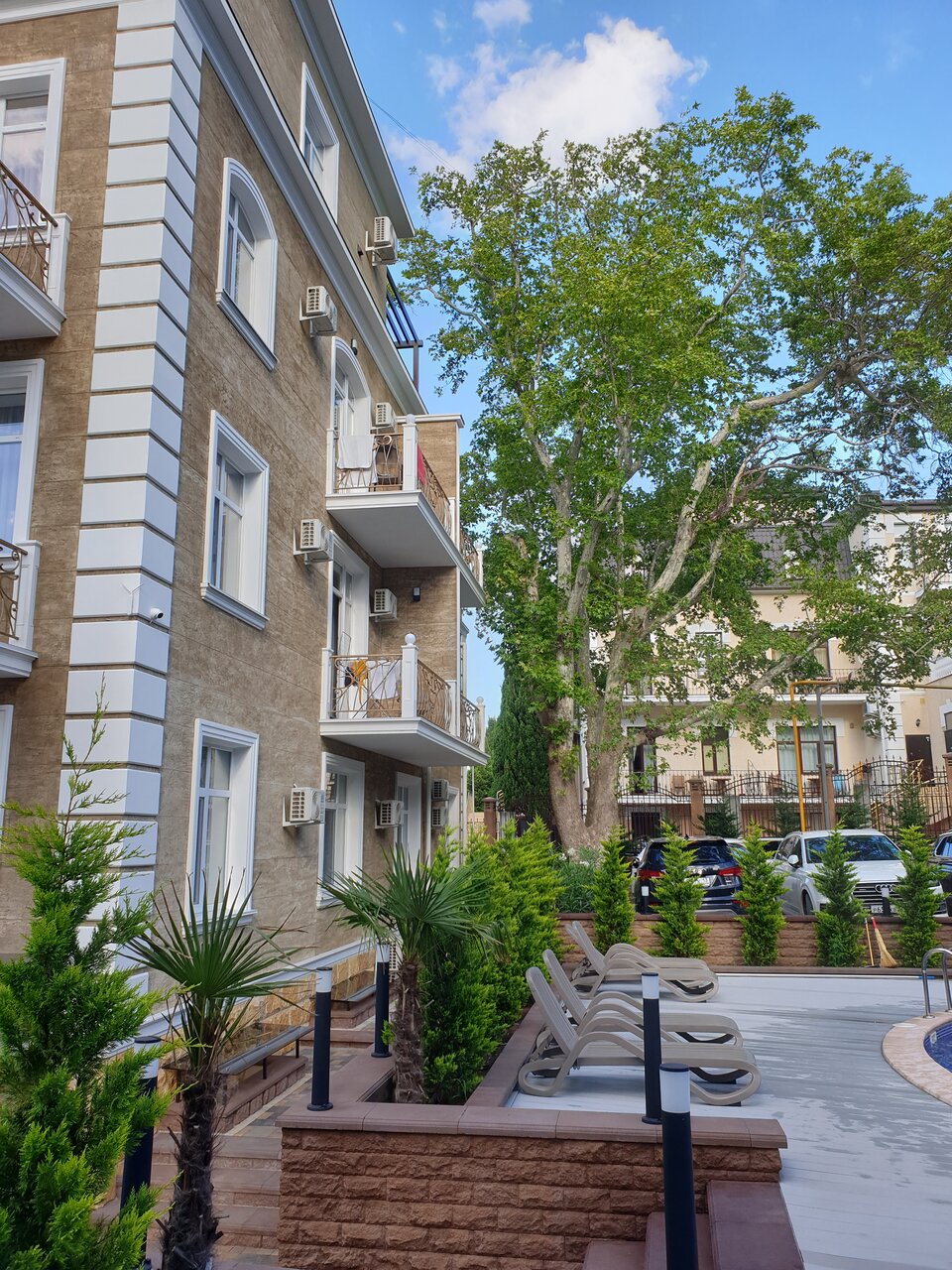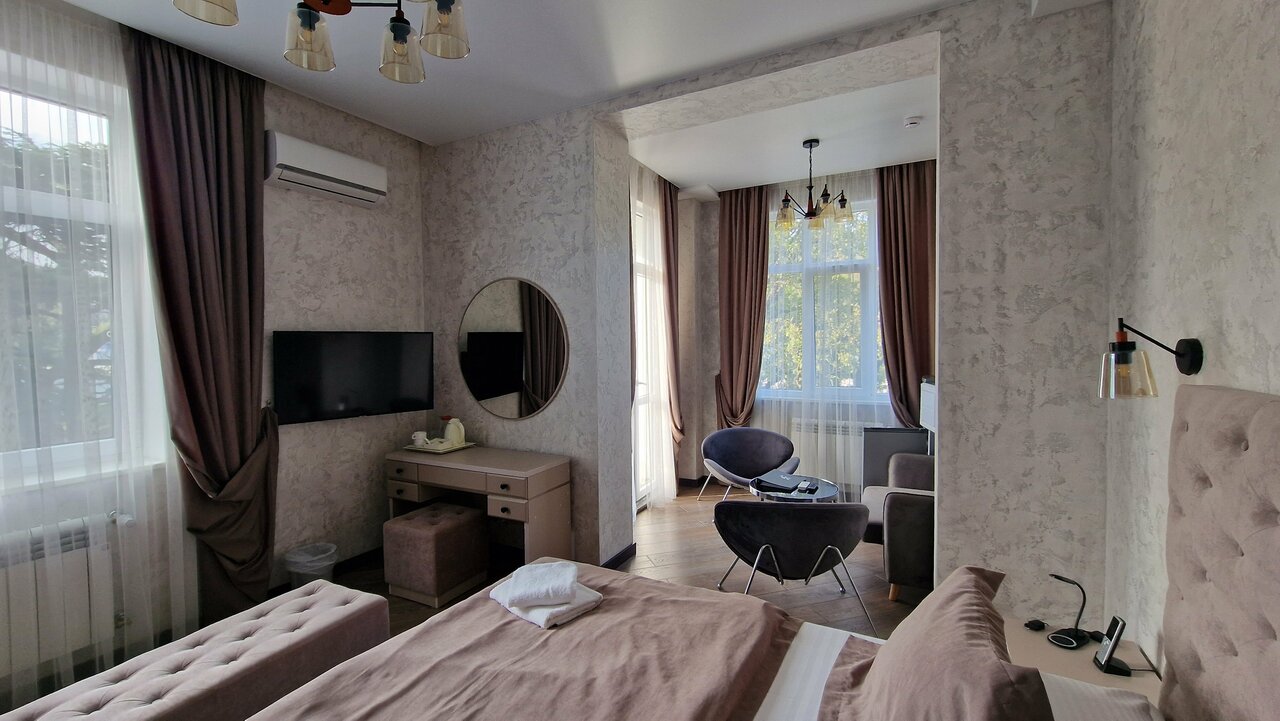 Прекрасный отель! Красиво, стильно, комфортно, разнообразно, оригинально, вкусно! Отдыхали с семьёй с 10.08- 18.08.Номер у нас был двухкомнатный с отличным ремонтом,холодильником, большой кроватью и диваном, в каждой комнате телевизоры и кондиционеры. На территории есть парковка, бассейн и столики,где можно посидеть вечерком. Каждый день уборка номера и смена полотенец. В стоимость входит завтрак. До моря 5-7 минут. Администраторы девочки очень приветливые. Отель рекомендую. Обязательно к вам ещё приедем!