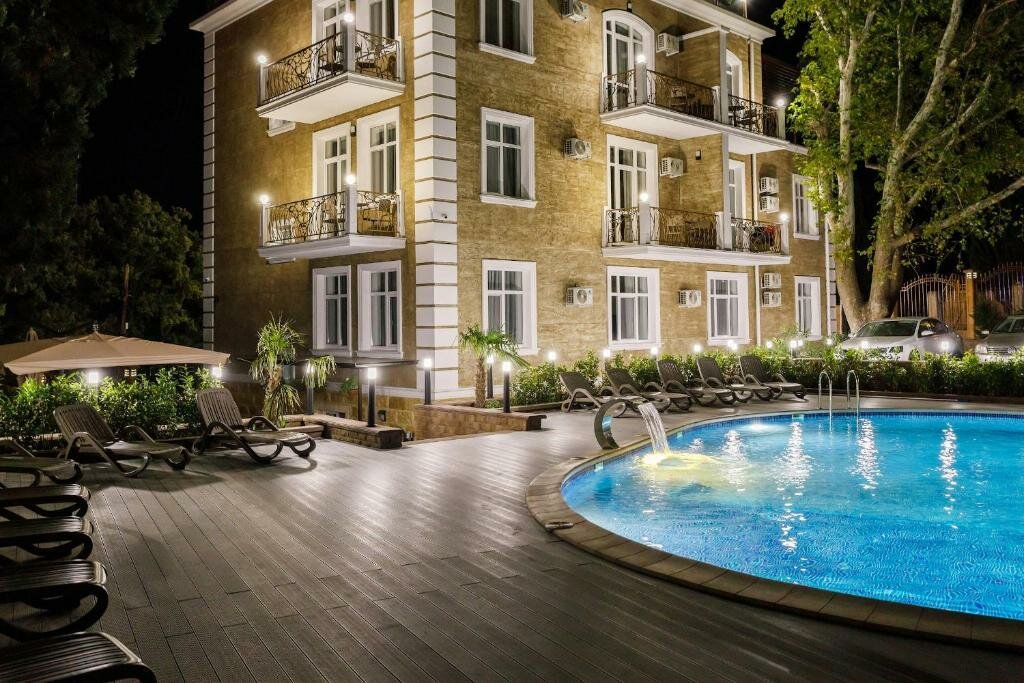 Отличный отель,большие номера в которых есть все необходимое для комфортного проживания,полотенца меняют каждый день,есть бассейн,куча диванчиков и кресел на территории,где можно просто посидеть,подышать свежим воздухом.Также есть электромобиль который довезет до набережной,хотя там и так гостиница расположена близко к набережной-пляжам. Сотрудник Евгений-очень коммуникабельный и отзывчивый,ему отдельное спасибо.С удовольствием приедем сюда снова
