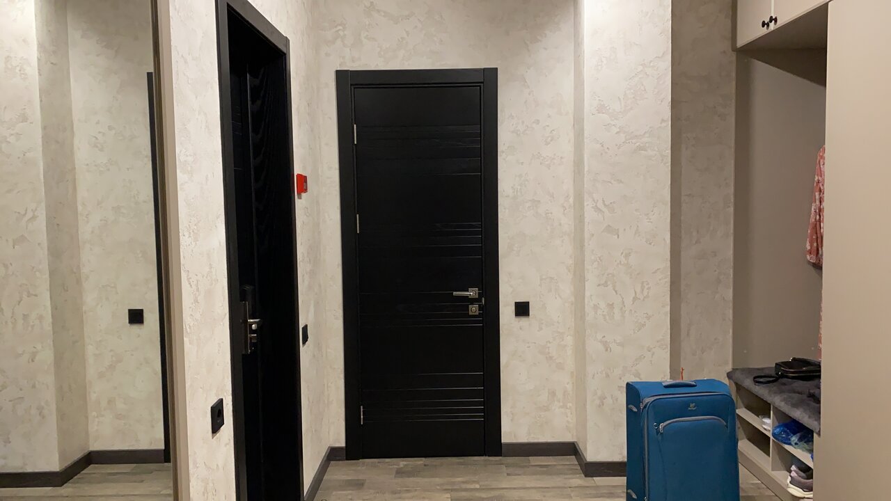 Две смежные комнаты.ПрихожаяСанузел: душевая кабина, унитаз, гигиенический душ.1. Комната: кровать king size bed, телевизор, кондиционер, шкаф.2. Комната: двуспальный диван, телевизор, кондиционер, холодильник, СВЧ печь, чайник.