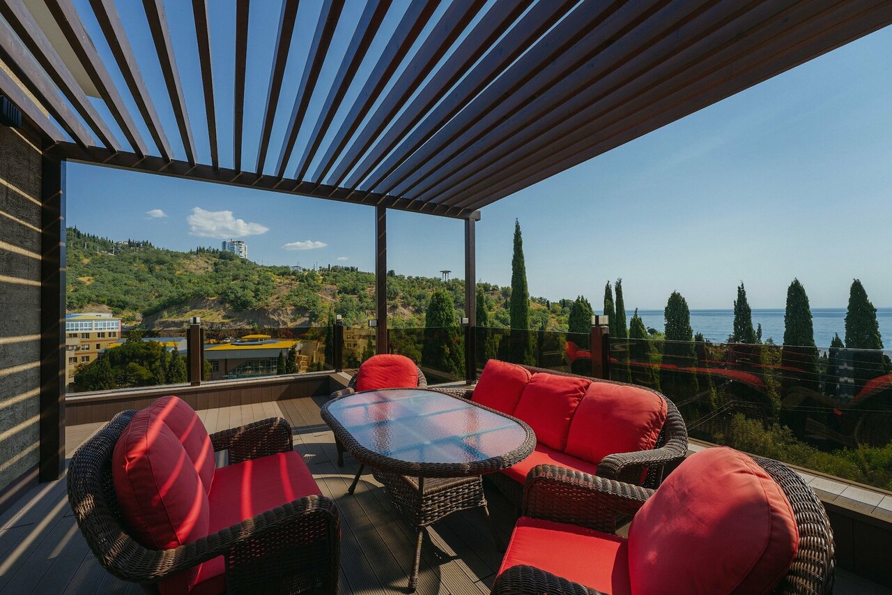 - Апартаменты. Две раздельные комнаты. Номер находится на третьем этаже. Терраса.Вид на море, горы и округу. 20000₽