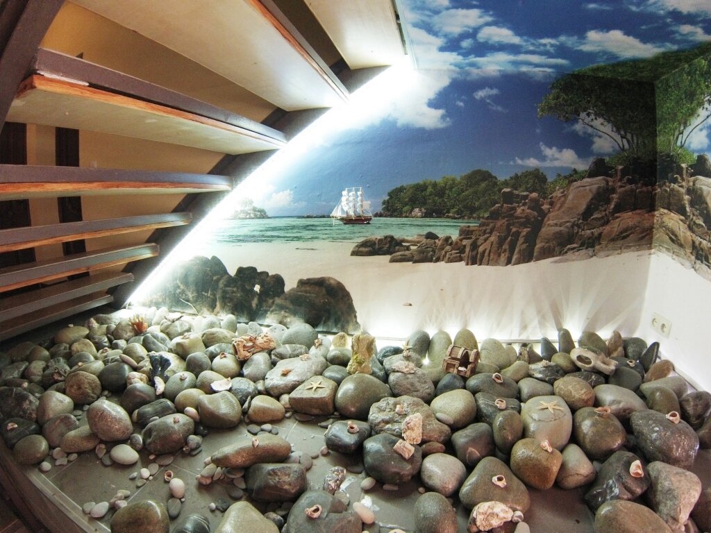 Центр города. Троллейбусная остановка недалеко: хочешь, на центральный пляж уедешь (буквально пара остановок, можно и пешком, но зачем, если можно доехать?, троллейбусы ходят регулярно), хочешь — в Профессорский уголок, там пляжи получше. Есть место, где можно посидеть в дворике под деревьями за столиком. Рядом классный круглосуточный магазин. И ещё один не круглосуточный, по типу нашего К&Б. Номера — огонь (нас было много, могли сравнивать), просторные и комфортные, на уровне люкса. Балконы с видом на море и горы (мы такие виды просили заранее). Максим (хозяин) умный корректный парень. Что впечатлило: у него есть библиотека! От Достоевского и Чехова до Донцовой. Ооочень рекомендуем!