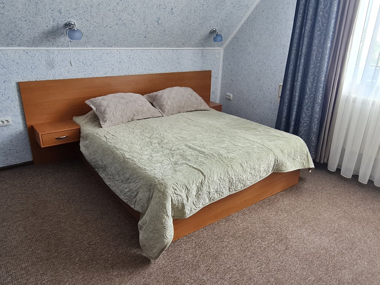 Комфортабельный номер с двухспальной кровать и всей необходимой мебелью и техникой для проживания двух человек.