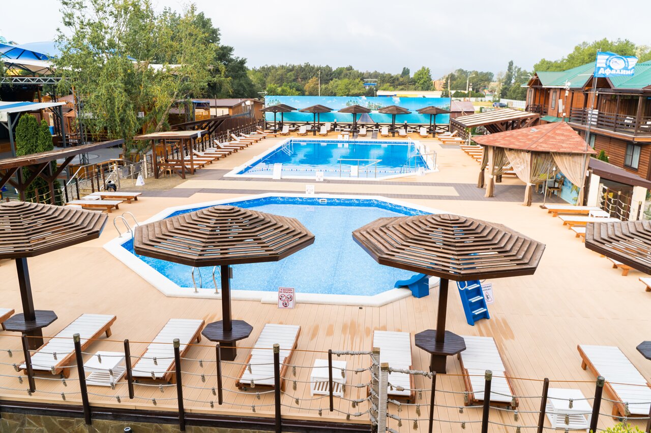 База отдыха Афалина очень красивая территория, своя столовая ассортимент широкий цены не дорогие и очень вкусно, даже привередам. Имеется свой чистый оборудованный пляж- трансфер с отеля возит бесплатно, номера чистые, уютные, постоянно выносят мусор, меняют постельное, полотенца, убираются. Персонал вежливый. Бассейны чистые, теплые и большие- оборудованы лежаками и шезлонгами, анимация для детей и взрослых. Три детские площадки, медпункт, дискотека и тд . Рекомендую.