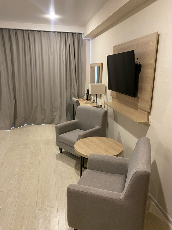 Новая, современная гостинница. Номера замечательные. Обслуживание на высоте, уборка и смена полотенец ежесуточно. Имеется чайная станция в номере и в качестве презента каждый день бутылка с питьевой водой. Еда на любой вкус и в большом количестве. Много свежих фруктов, включая киви, виноград, клубника. Особый респект кулинару, выпечка изумительная. Особенно понравилось то, что небольшими порциями, можно взять на пробу несколько разных блюд. В бассейне вода 27 гр., имеется три сауны, на любой вкус. Имеются две детские площадки, одна в корпусе, другая на открытом воздухе. Там же и бар с промежуточным питанием. Рекомендую к посещению.