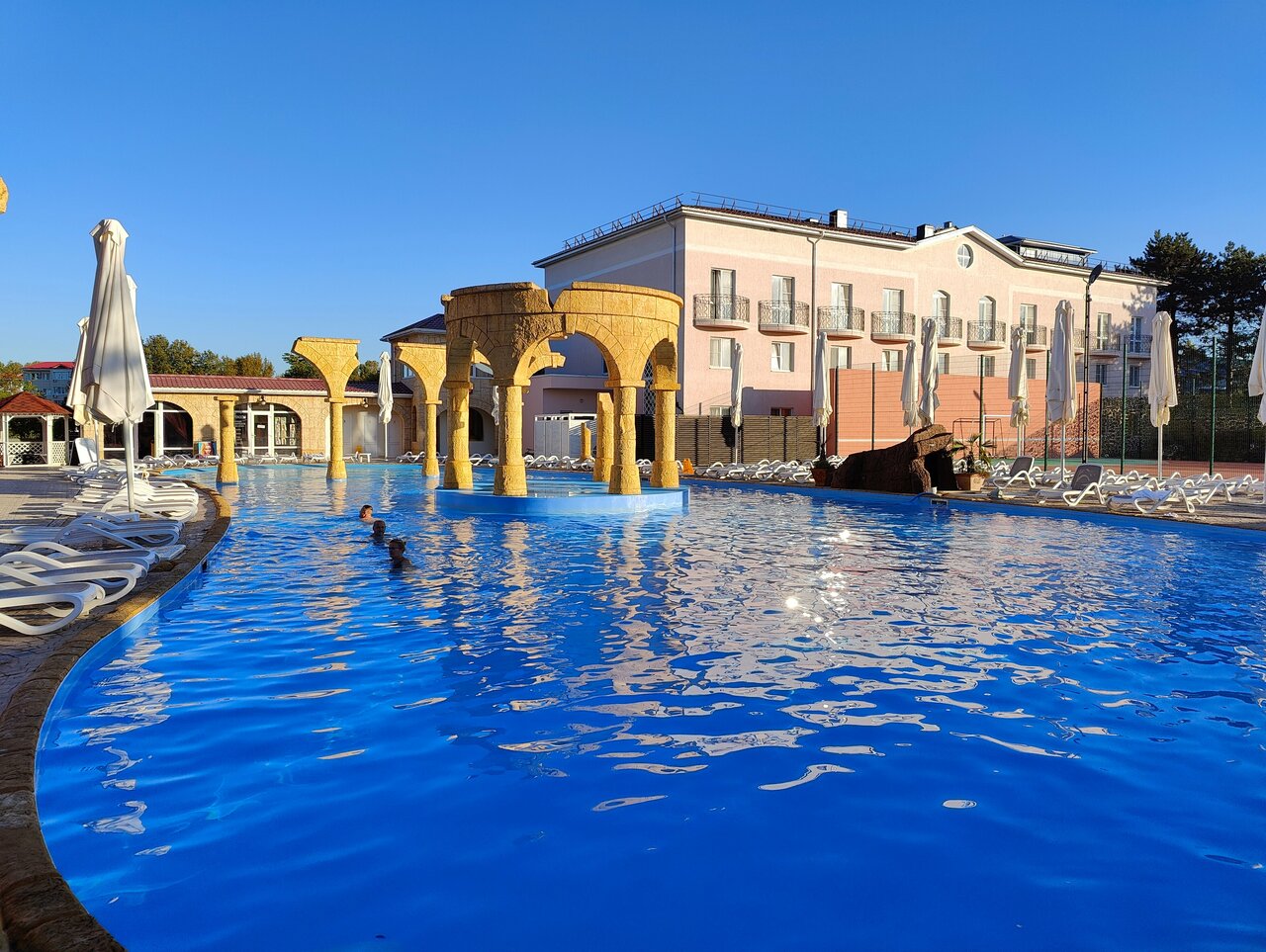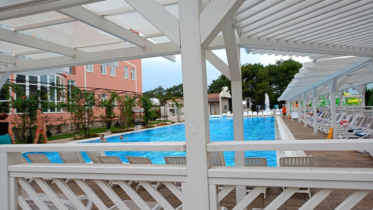 Семейный отель Вкусно кормят и разнообразно, особенно респект кондитерам — кафе внизу с пироженными. Есть развлечения для детей. Удобные электромашины до пляжа. Тёплая и чистая вода в уличных бассейнах. Чистая территория и чистые номера в корпусах.