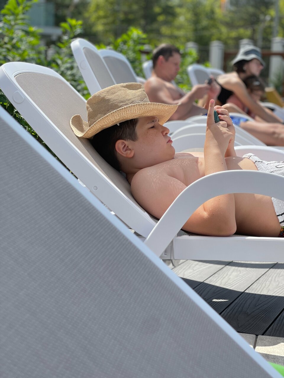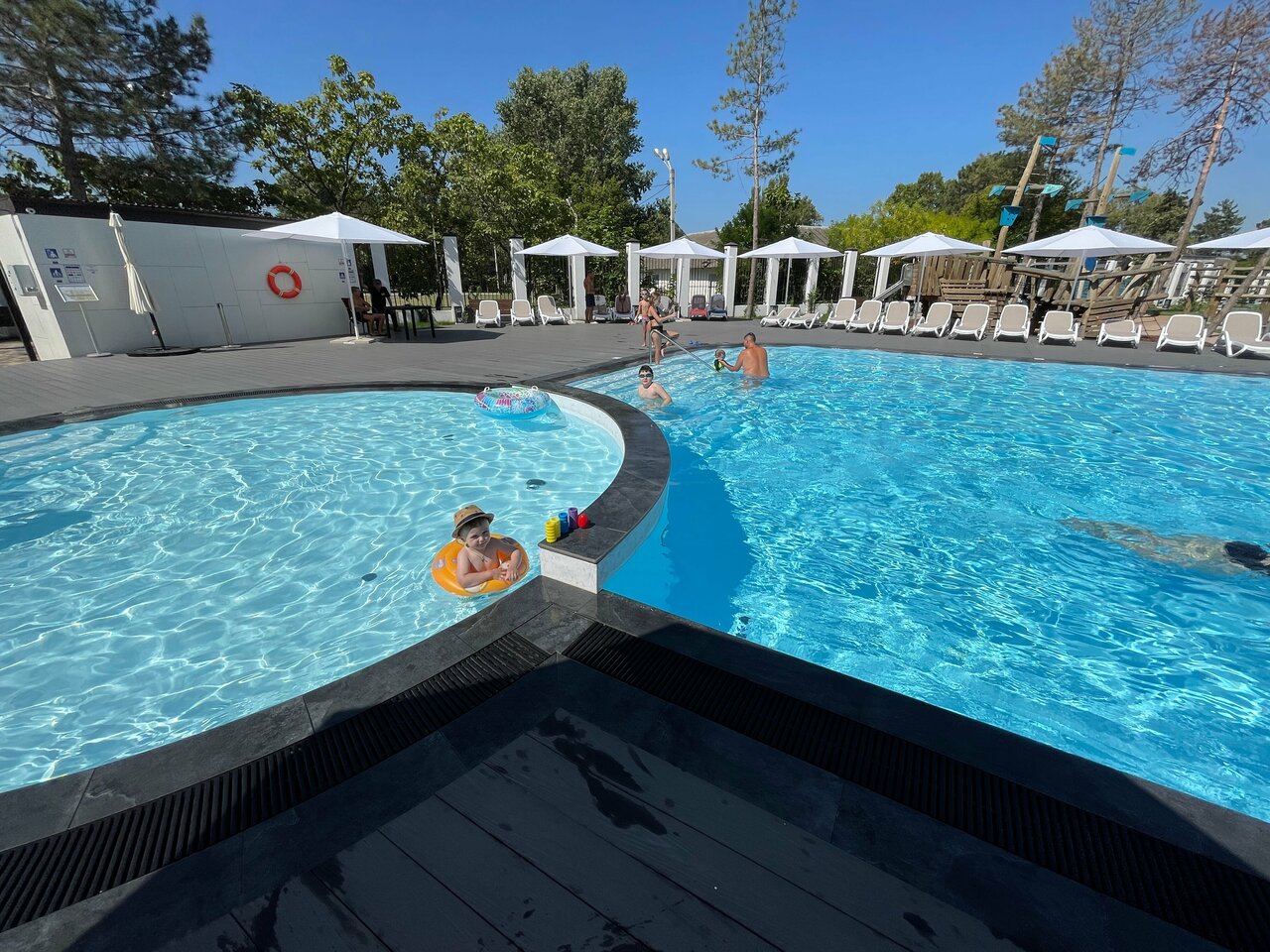 Шикарная территория, очень удобные лежаки, оказалось что это важно) Бассейны всегда чистые, оба, всегда спасатель сидит наблюдает и просит девушек с длинными волосами собрать их, чтобы волосы не плавали в воде) По территории ходят садовники, стригут газон и собирают сосновые иголки. Классные детские площадки, вечером можно пойти гулять и не заметить как прошел час или два, дети довольны) Очень красивое освещение по всей территории, такие светящиеся кубы! Приятно там находиться) Супер крутое место! Ещё момент, для сравнения: Мы были в гостях в ЖК Колорит, там грязные бассейны, ужасные пластиковые твёрдые лежаки и безразличный смотритель бассейна, который не отрывает глаз от телефона Ещё и чистит фильтры бассейна, когда там плавают люди! Так что есть с чем сравнить!