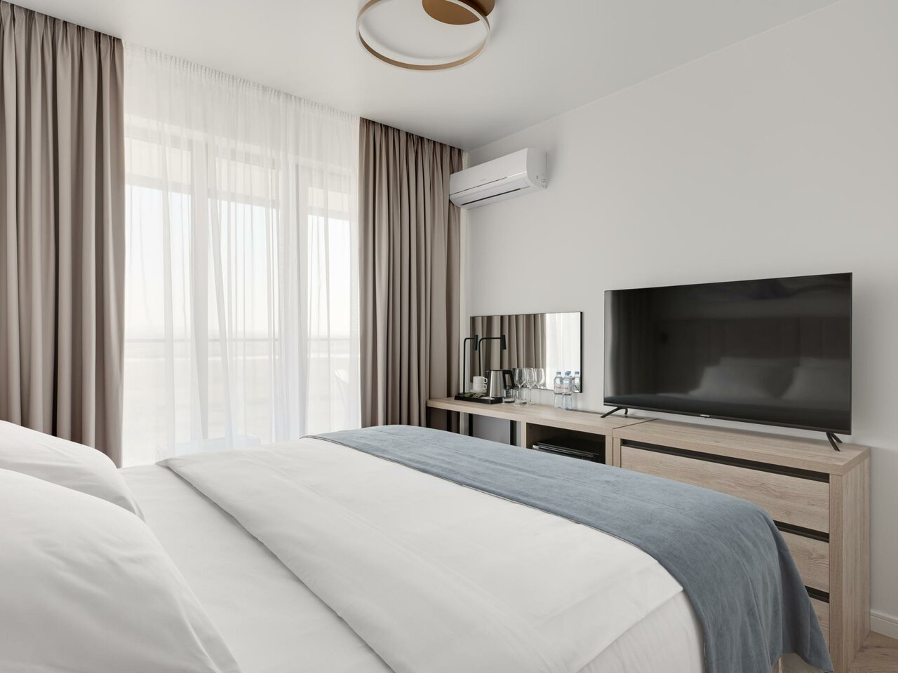 Любим выбирать для отдыха новые отели, в этот раз выбор остановили на новом Апарт -отеле. В номерах чисто ,на территории есть бассейн , детская площадка как мы поняли скоро планируется открытие бара ,спа и ресторана .до моря 7 минут шли ,пляж хороший,чистый , нам все нравится . Обязательно вернемся когда остальные услуги будут доступны
