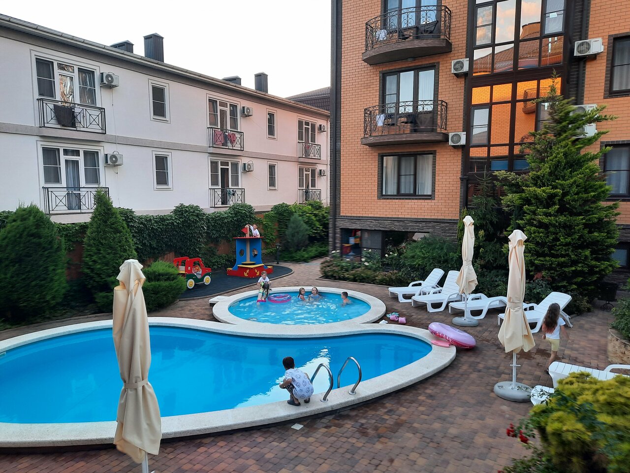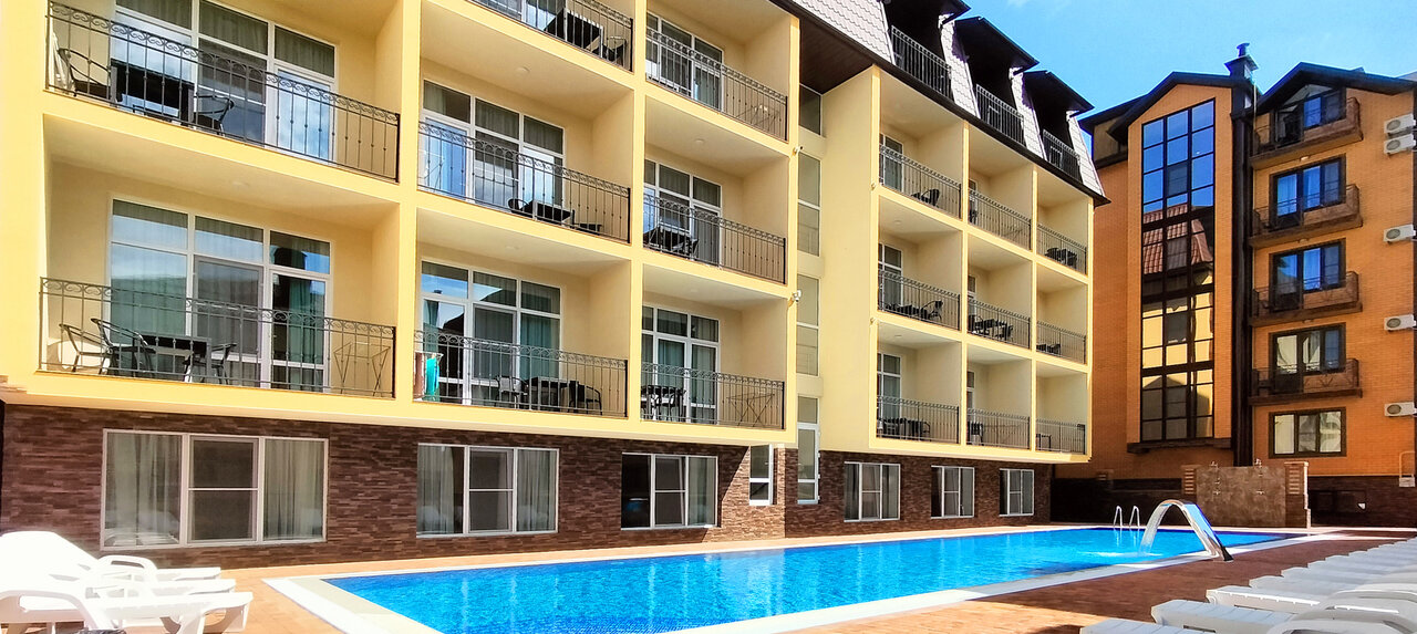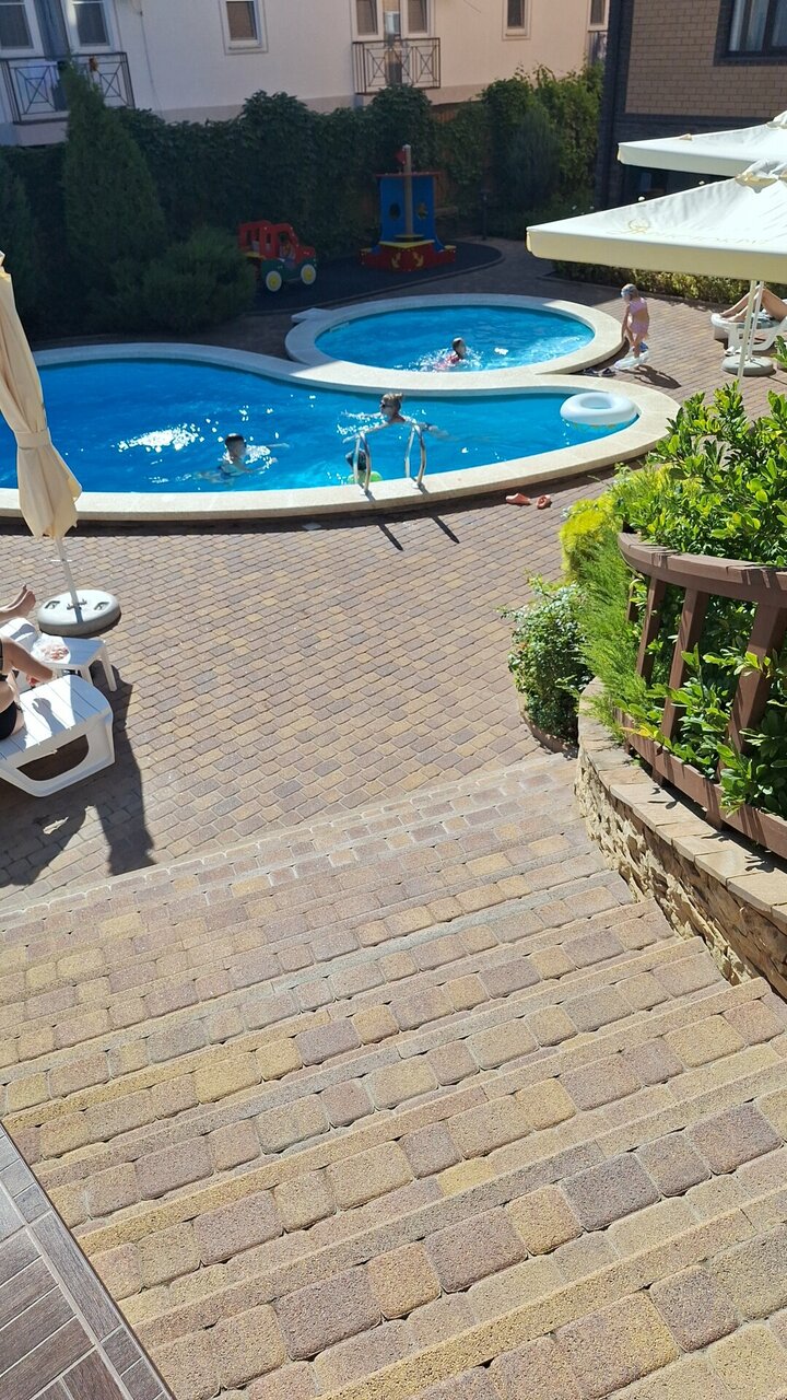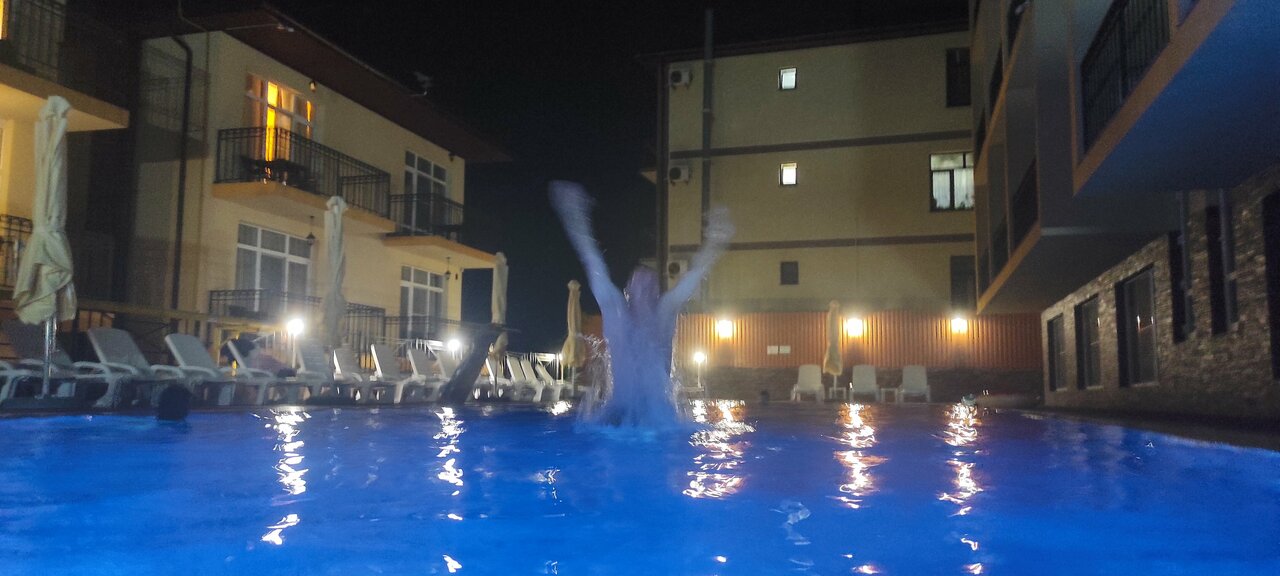 Отдыхали с 4 по 15 августа. Всё просто супер! Территория чистая, есть три бассейна, маленькая детская площадка, много зелени. Номера тоже очень чистые, уборка хорошая. Кафе со вкусной едой. Персонал отзывчивый и внимательный. До моря минут 15 пешком. Обязательно буду рекомендовать друзьям и знакомым. Спасибо за прекрасный отдых