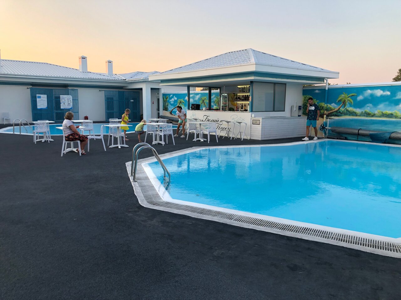 Еда на 4ку — без изысков , но вкусно. Уборка номеров -строгая 5ка. Смена полотенец (по запросу), влажная уборка каждый день. Номер большой, просторный. Пляж песок, чистят и убирают каждое утро. Первая линия — очень удобно. Бара на пляже нет. Бассейн на крыше , очень удобно. Персонал в столовой всегда на месте, убирает посуду, помогают, выносят. Бармен — ему откровенно все равно. Он просто уходит в неизвестном направлении, выдает абсолютно талое мороженое, всегда уставший от своей тяжелой работы. Аниматоры — их мало, анимации почти нет. Детская анимация под взрослые песни довольно странная. Детская комната не оборудована — висит приставка. Даже карандашей и мелков для доски нет. Вообщем развлекайте себя сами. На территории есть маленький комплекс : качели, горка, качалка.