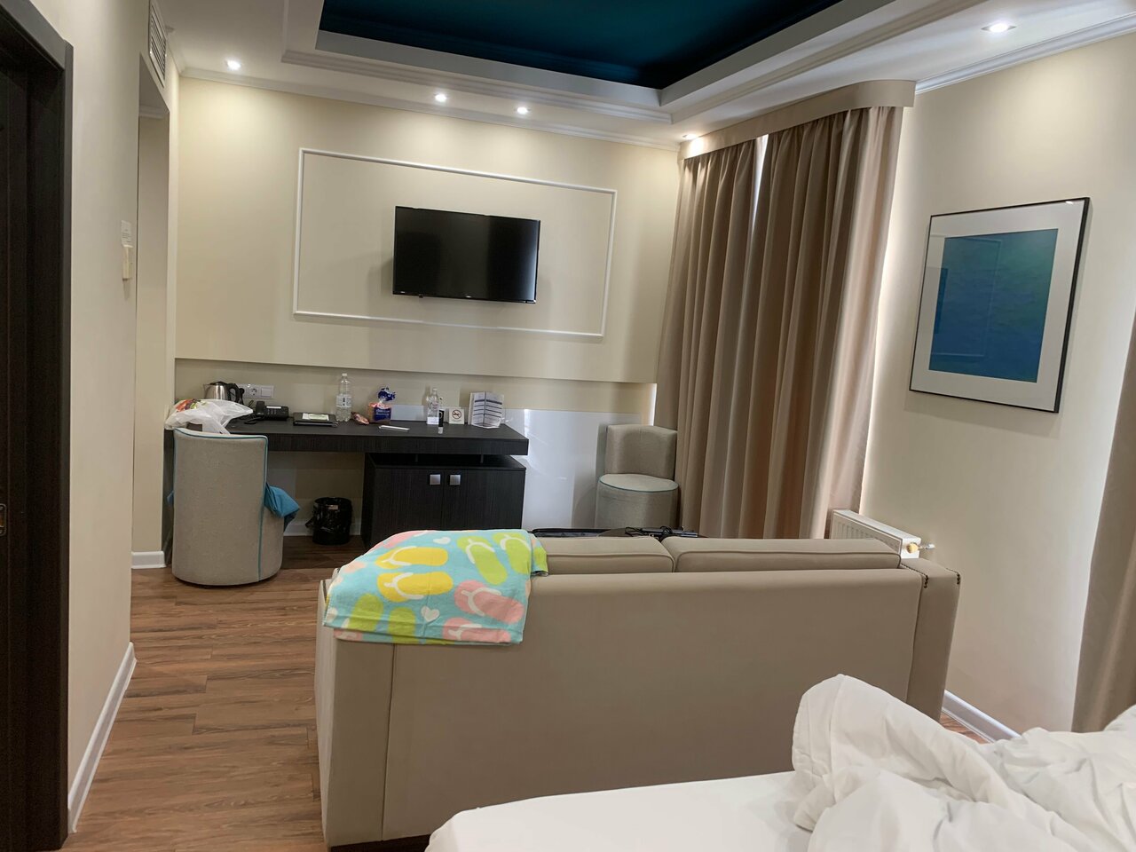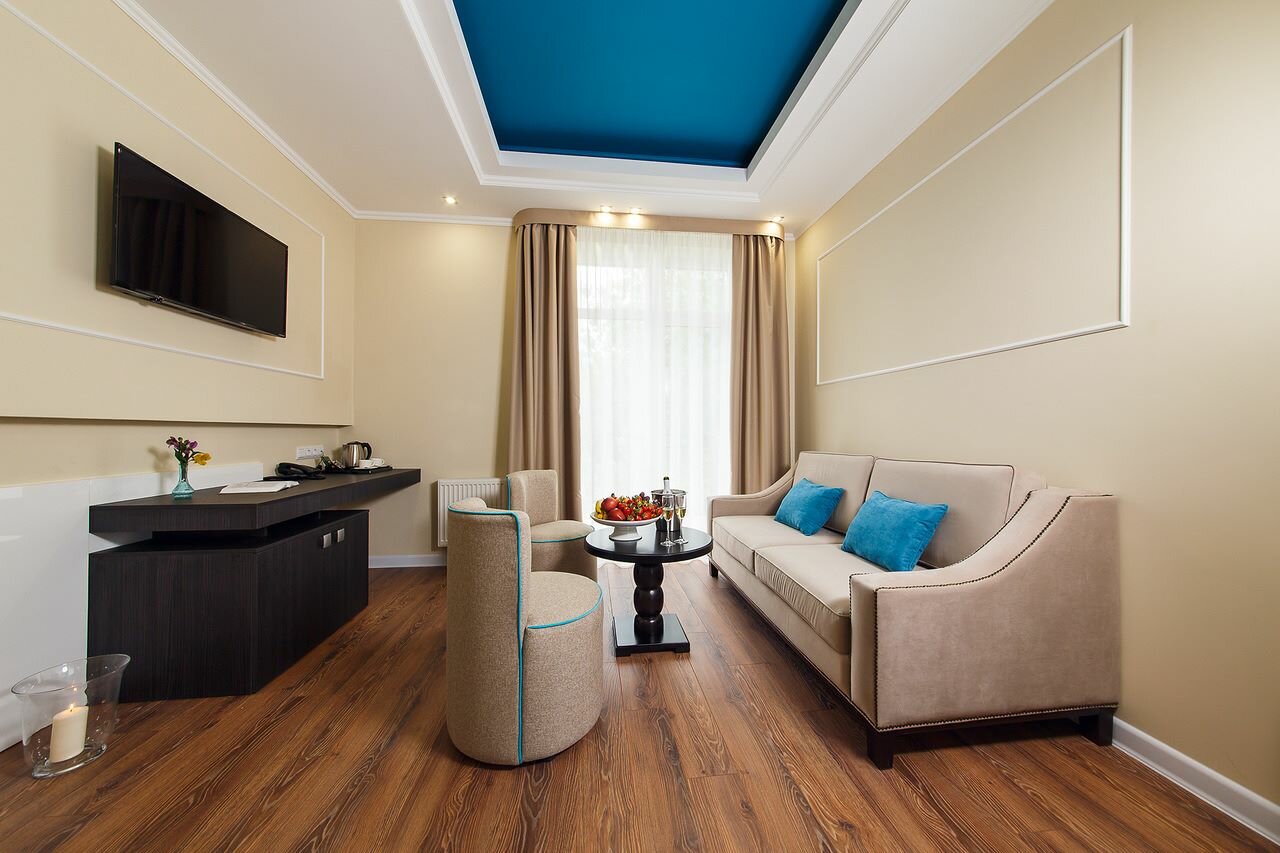 Добрый день! Останавливались в отеле 30.06-2.07 Очень приятный отель, красивый интерьер в самом отеле, дворик с бассейном хоть и небольшой, но уютный, располагает к тому чтоб там проводить время. Номер Джуниор Сьют — номер понравился, все как на фото, удобная кровать, уютно, два балкона, на одном есть столик со стульями, на втором сушилка для белья. Ванная большая, вся сантехника работает исправно. Завтрак- вкусный, выбрать есть что. Из минусов: в сливе ванной чьи-то волосы, сама ванная чистая, но волосы не убрали. Вид на стройку, для меня это минус, люблю фото на балконе, тут их не сделать. Ночью почему-то очень холодно в номере, есть одеяло тёплое, но все равно холодно. Воду и чай/кофе в номере — только при заселении. И мыло, оно не мылиться- как бумага. В целом отель и номер мне понравился, по возможности приедем ещё.