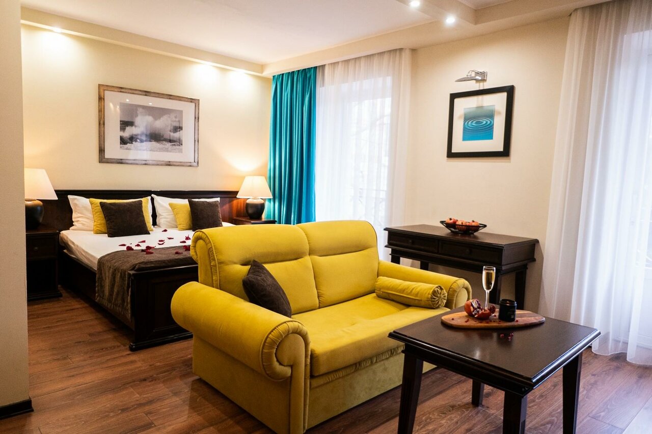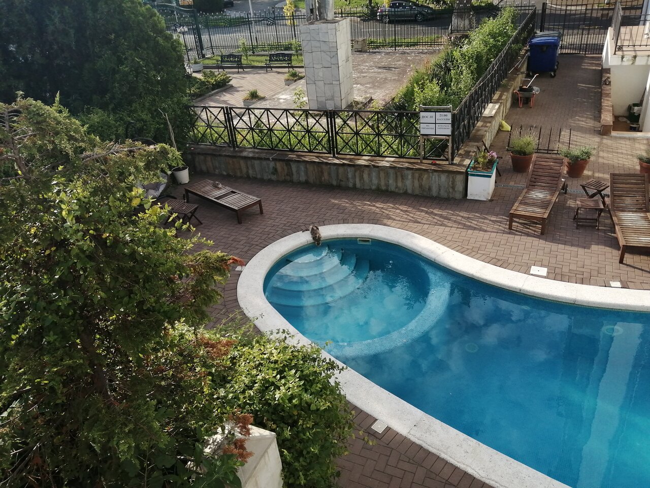 Уютный отель. Отдыхали в сентябре. Находится в самом центре города, до набережной 3 минуты, несмотря на это в уютном дворике у бассейна всегда спокойно, не шумно, играет расслабляющая музыка. Сотрудники отзывчивые, всегда быстро реагируют на просьбы. Завтрак скромный, но всё свежее и вкусное, отдельные 10 баллов за сырники, потрясающие. Рекомендую, получите настоящее курортное удовольствие, остановившись здесь.