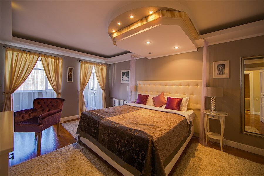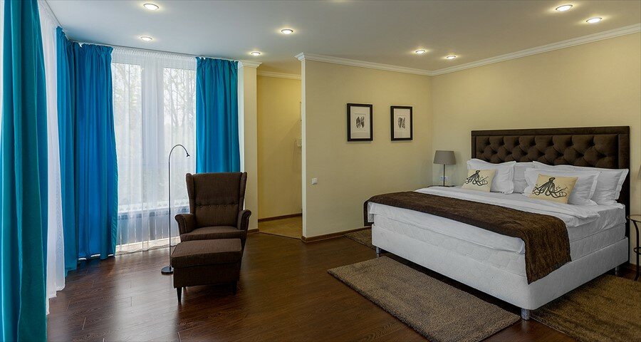 Красивый и просторный однокомнатный номер повышенной комфортности с большой кроватью и диваном.