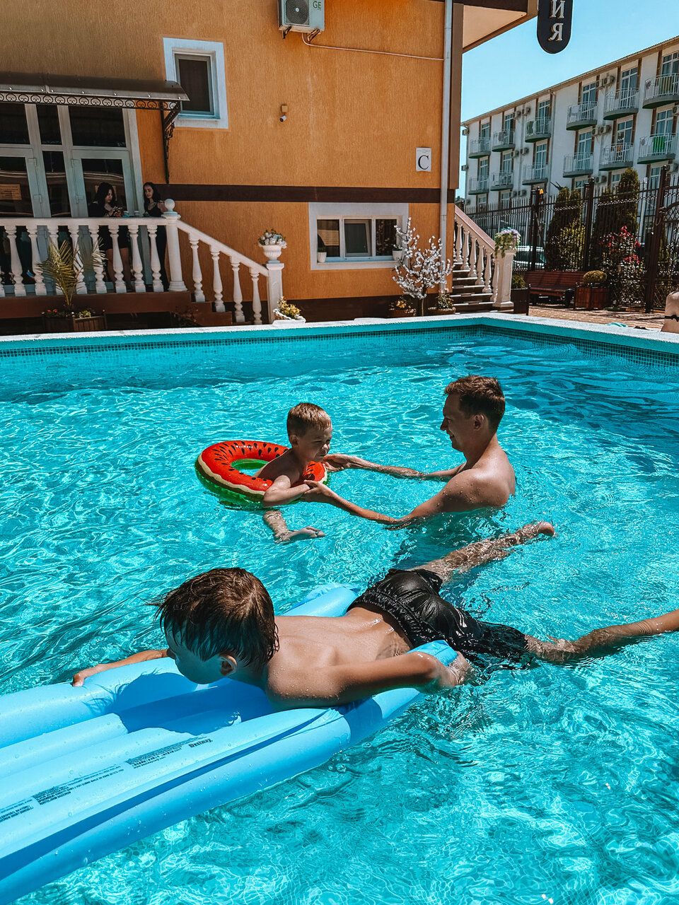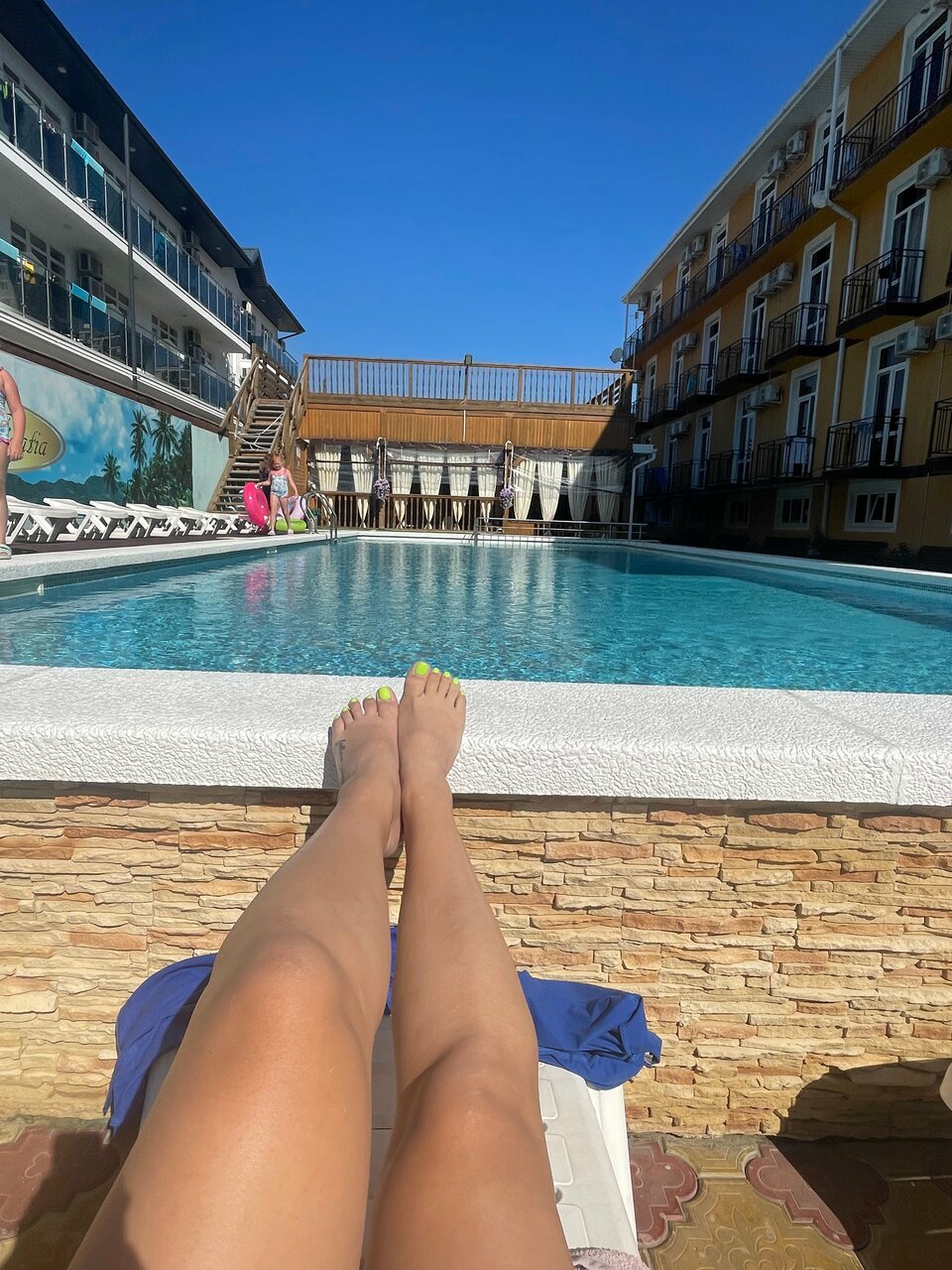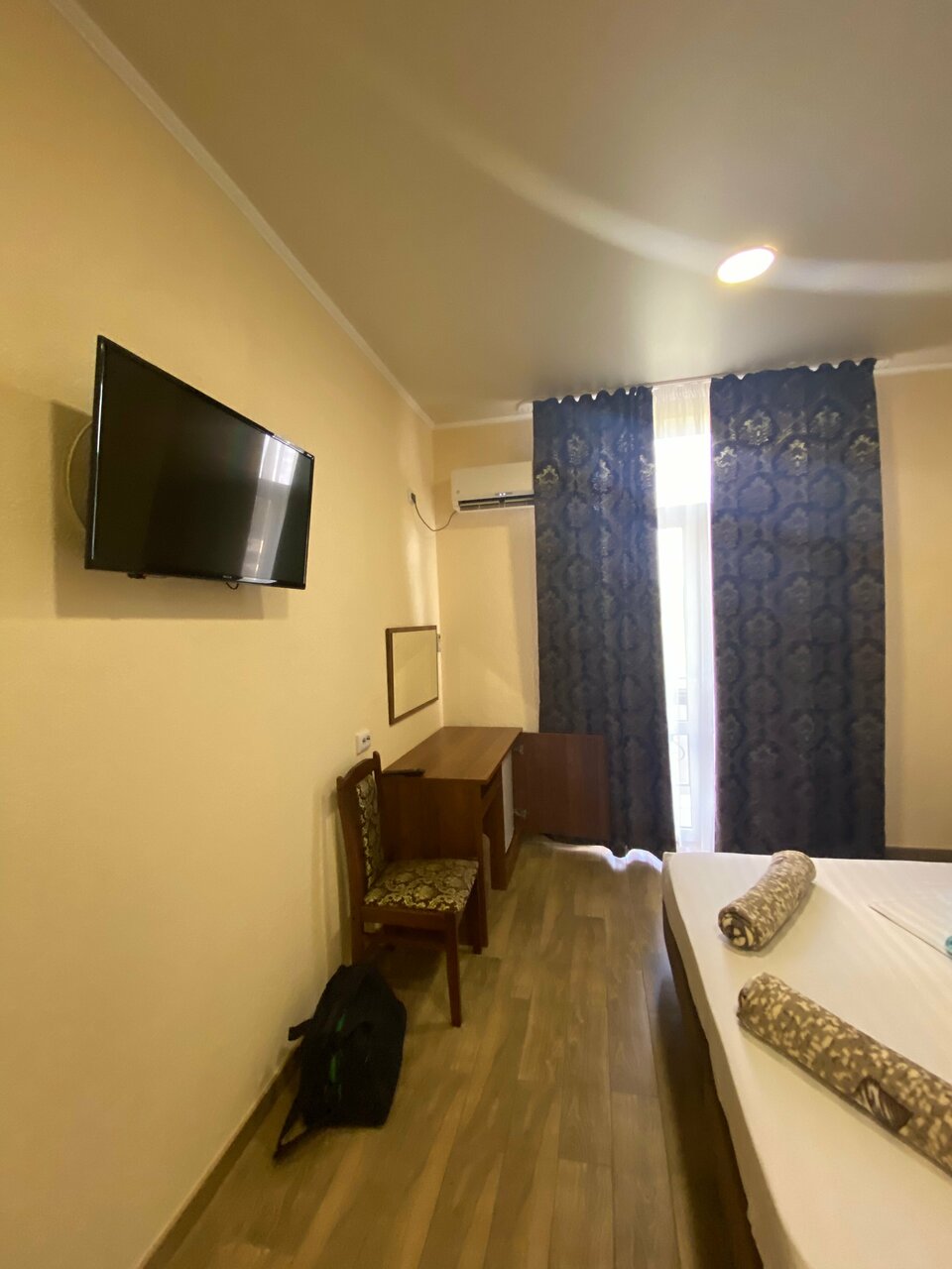 Хороший отель, недалеко от моря ,прекрасная столовая вкусно по домашнему, чисто,большой басик.Трансфер с вокзала 500руб(чемоданы тянули сами мама и ребенок)встретили на парковке.в отеле высокая лестница и там сами тащили свои чемоданы.и если хотите поспать музыка долбит на басах с 8.30-до23.00.иногда уменьшают.Тусить всем сюда.