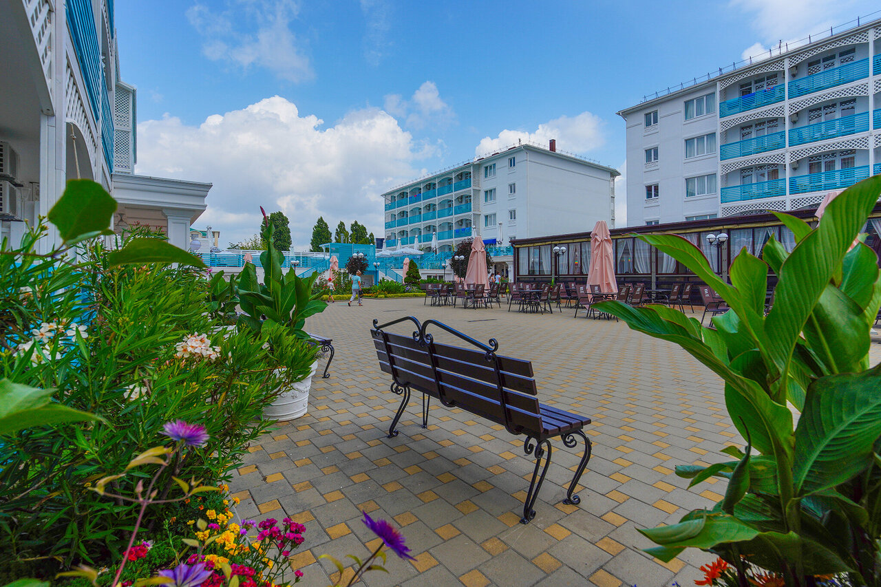 Отель хороший. Жили во втором корпусе, номер ‘Стандарт’, Плюсы: -занимаются детьми с 9:00 до 22:00 кажется. -большой бассейн с зоной для детей. Но возможно не всем хватало там лежаков. - завтраки- разнообразные, вкусно и много разной еды. -спортзал, бар для взрослых). Минусы: -нужно как-то бронировать заранее парковочное место. -Джеметинский проспект- ведёт на пляж и через него идёт огромное количество людей. По сути один большой рынок. - пляж Анапы, море анапы- это не очень. 5 метром чистое море, а потом водоросли.