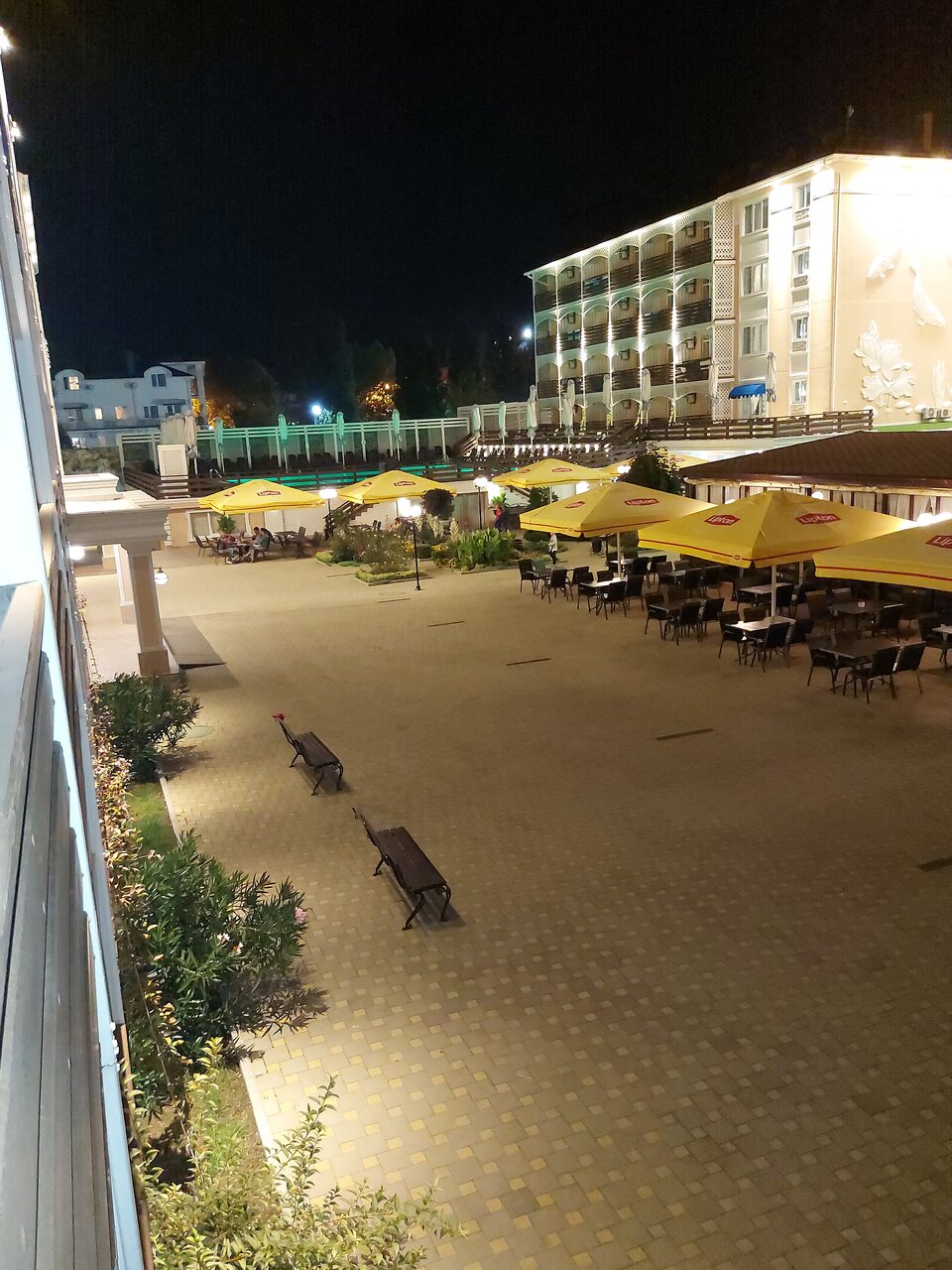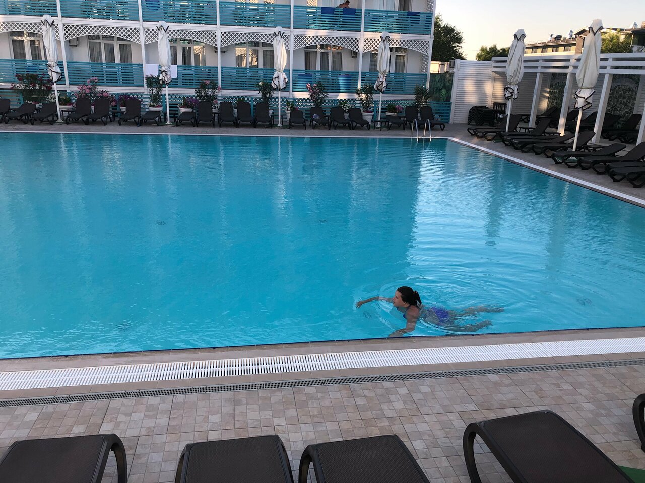 Очень очень громко, с маленькими детьми вечером просто приходится убегать из отеля, так как находится на территории двора невозможно. Еда нормальная, без изысков. Хамоватый охранник на входе, парковка платная за территорией в поле. Анимация детям понравилась, водное поло просто огонь. Очень мало зелени. Бассейн чистый, лежаков достаточно. Горничные очень хорошо убирают.