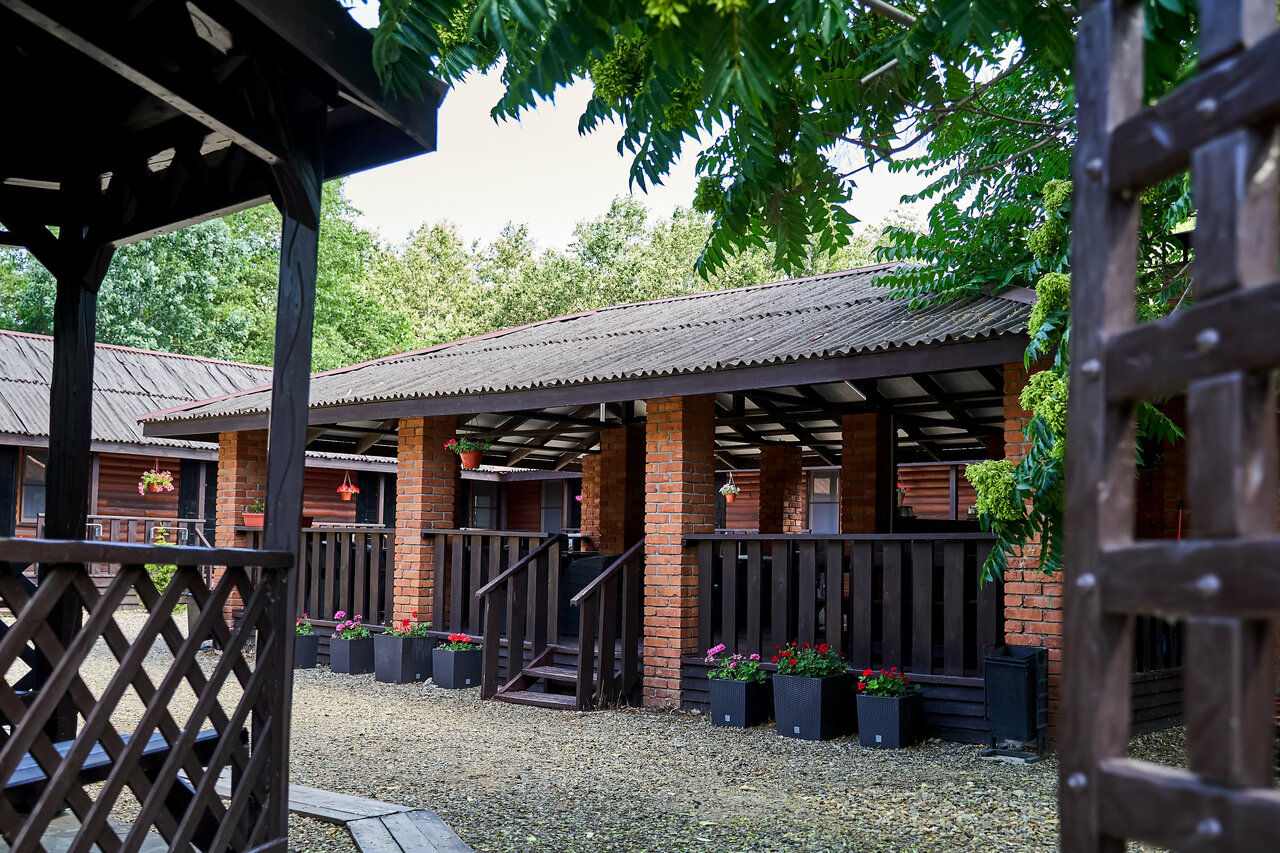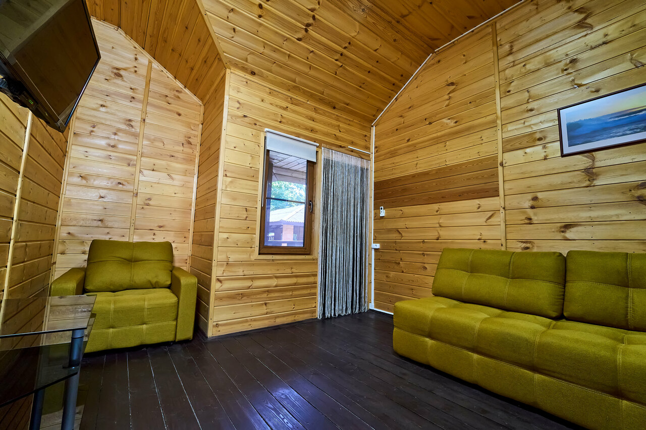 Удобства: — Номера с кондиционером, холодильником, Wi-Fi, телевизором и санузлом. — Открытый и детский бассейны, летняя веранда, детская площадка. — Бесплатная парковка, общая кухня, микроволновка, плита, посуда. — Проживание с животными (платно), детские кроватки (платно). — Уборка, прачечная, площадка для пикника.