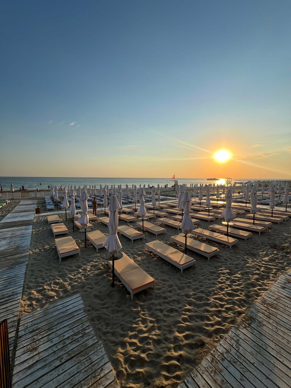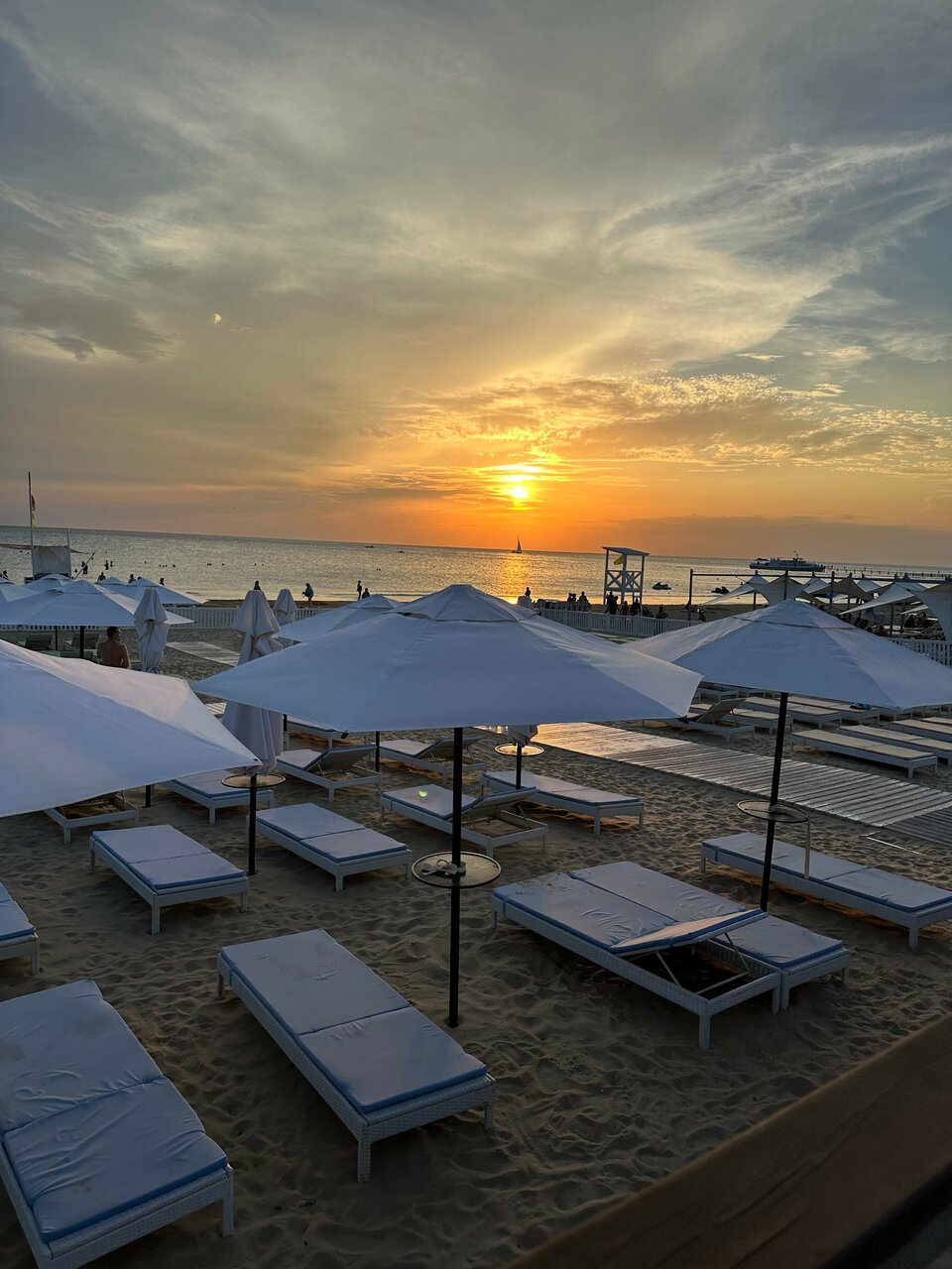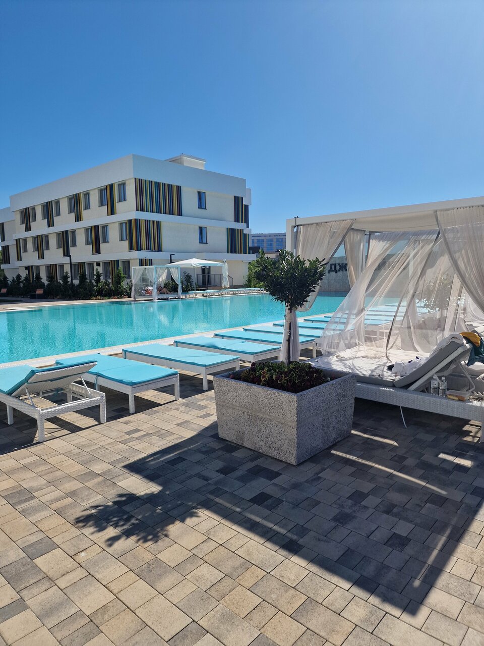 Отдыхали в сентябре 2024, в целом отдых понравился и сам отель и расположение, все отлично! Но есть несколько но.. 1) Персонал был не особо доволен, что понаехало столько народу в сентябре( это мы слышали от них) 2) По питанию было все итак отлично, но все таки обещали и Азию и рыбу и креветки, давали один раз и то надо успеть, не рассчитано как будто на народ весь. 3) ОЧЕНЬ БОЛЬШОЙ МИНУС- это детская площадка на пляже, СДЕЛАЙТЕ ОБНОВЛЕНИЕ( реконструкцию) это просто уже ужас а не площадка, для такого уровня отеля это прям слабо!!! И сами дорожки на пляже выстелены досками, на которых ВСЕ ДЕТИ НАЦЕПЛЯЛИ ЗАНОЗЫ, сделайте с этим что нибудь! Приходилось ребёнка отпускать бегать только в обуви! Это же пляж! 4) Детская комната была частично сломана да и игр там оооочень мало, оставляет желать лучше прям! На территории две площадки для детей, они нормальные, но маленькие. Если эти большие недочёты исправят, то можно ехать а так с детьми я не знаю, опасно даже!