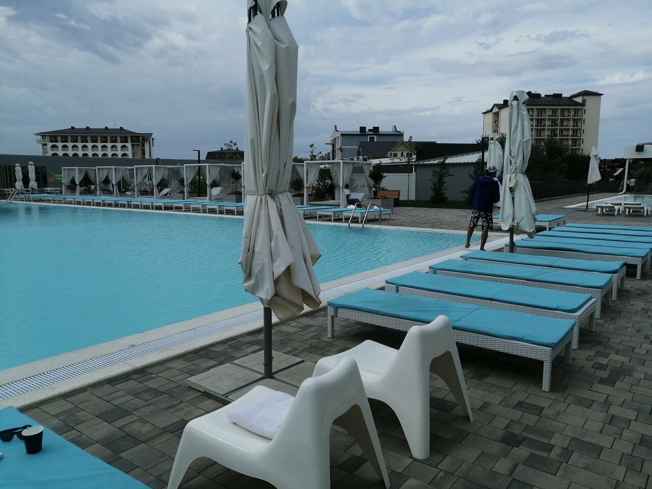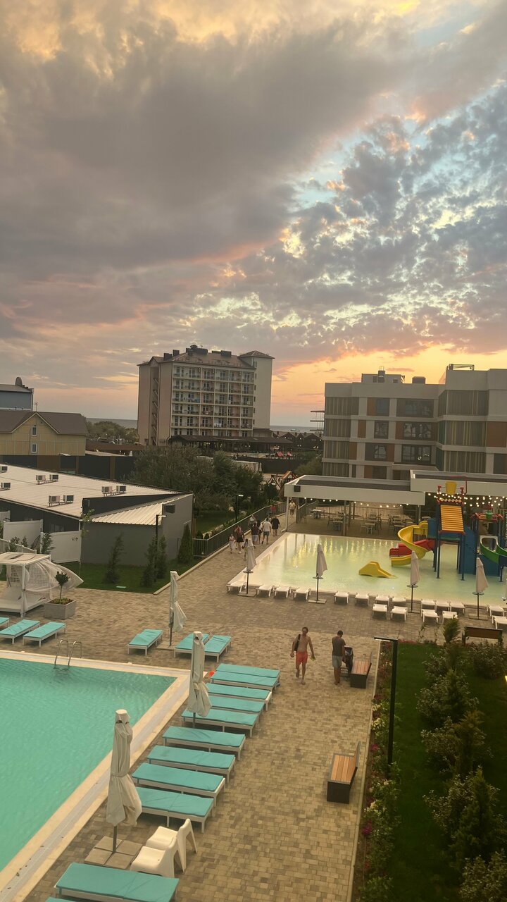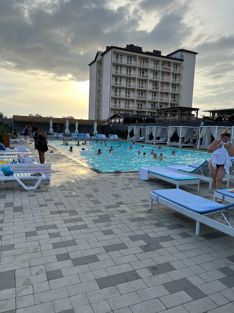 Началось знакомство с отелем с вежливого охранника, который объяснил куда паркануться и как выезжать/заезжать после. Приветливые девчата на ресепшене, с шампанским и виноградиком наготове . Хороший чистый номер (который привели в изначальное состояние сразу на след день, когда мы пошли завтракать) Кухня отдельный гастрономический кайф. Которая по сути кормит с 7.30 до 21.00 весь день. Для моих друзей алкашей — алкоголь включен (чему они радовались отдельно) Причем, не только пиво с вином , но и мартини, нормальный вискарь и прочее. Горячий басик в центре, пляж рядышком. Можно и не выходить с отеля все время пребывания. Думаю приехать еще раз (нам теперь скидка 10%) с детьми. Тк там для них закрытая территория, тот же бассейн и комната детская с аниматором на весь день. Спасибо персоналу и владельцу, рекомендасьён