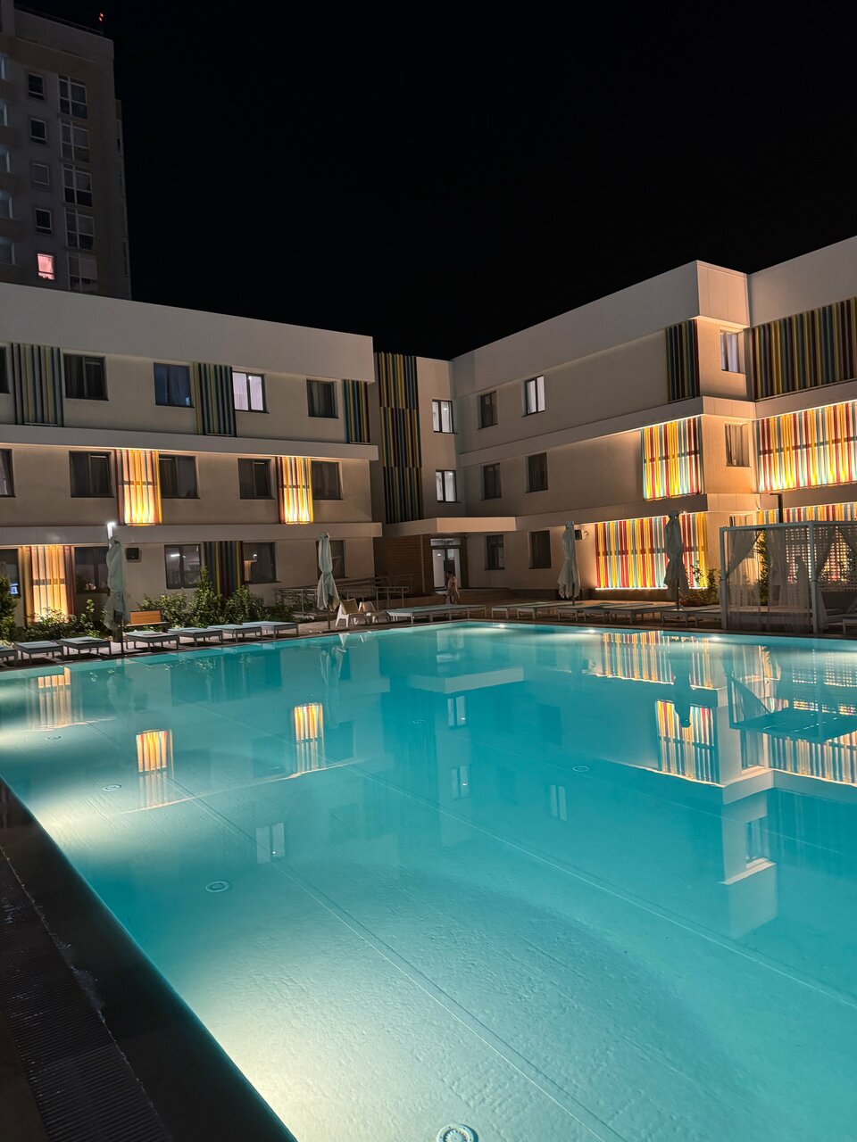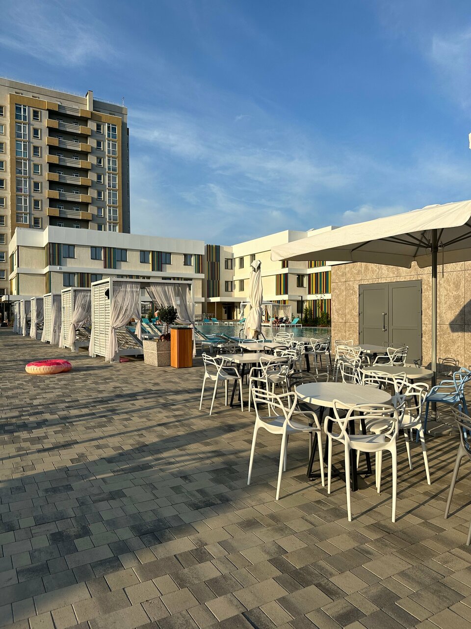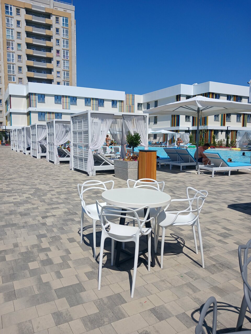 Началось знакомство с отелем с вежливого охранника, который объяснил куда паркануться и как выезжать/заезжать после. Приветливые девчата на ресепшене, с шампанским и виноградиком наготове . Хороший чистый номер (который привели в изначальное состояние сразу на след день, когда мы пошли завтракать) Кухня отдельный гастрономический кайф. Которая по сути кормит с 7.30 до 21.00 весь день. Для моих друзей алкашей — алкоголь включен (чему они радовались отдельно) Причем, не только пиво с вином , но и мартини, нормальный вискарь и прочее. Горячий басик в центре, пляж рядышком. Можно и не выходить с отеля все время пребывания. Думаю приехать еще раз (нам теперь скидка 10%) с детьми. Тк там для них закрытая территория, тот же бассейн и комната детская с аниматором на весь день. Спасибо персоналу и владельцу, рекомендасьён