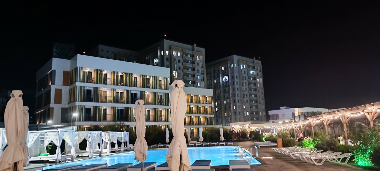 Прям прекрасные впечатления от уровня отеля. Сервис -1000% Чистота-1000% С раннего утра намывали территорию отеля, мыли детские площадки, подметали пляжные дорожки. Кухня разнообразная и вкусная. Анимация -активная и очень зажигательная. Ребята отпахивали при температуре +39*. Уважение!!!