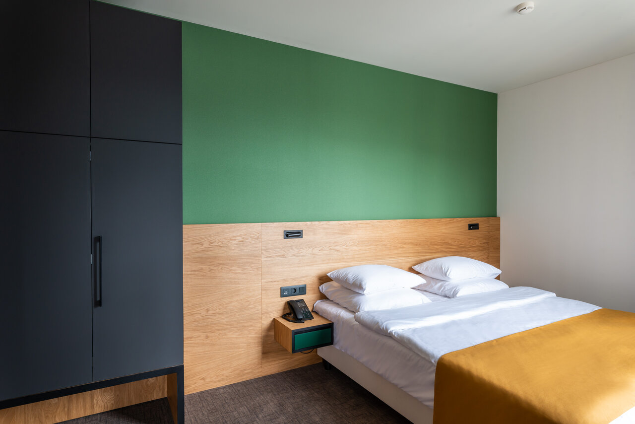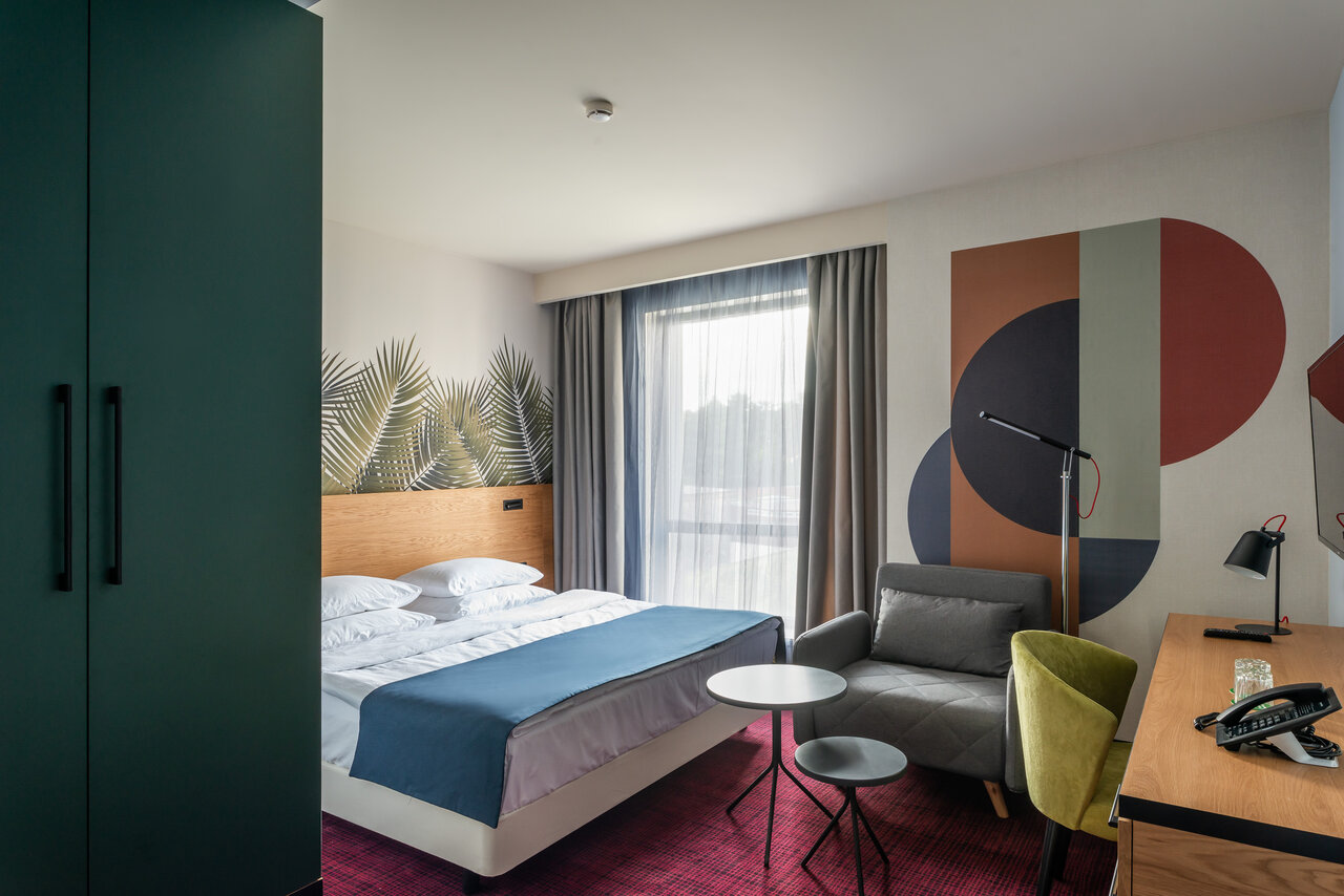 Взрослых: 1–4Категория: ЛюксРазмер: 35.57м2Кровать: Просторная 2-спальная кровать 180*2
