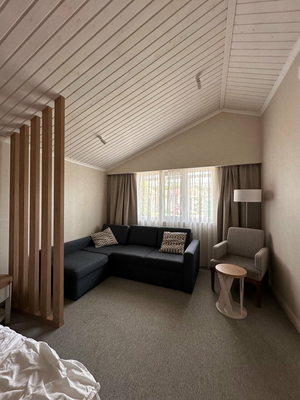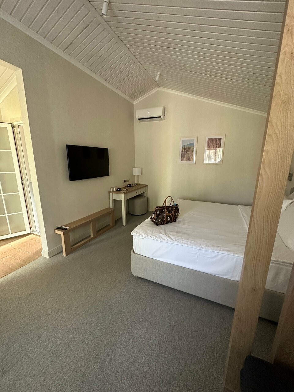 Шикарный отель! Очень уютные домики. Вкусная еда и вежливoе обслуживание. И главное — замечательный пляж! Много места, чисто, спуск в воду плавный. С детьми попалии на День защиты детей, было много мерoприятий детских, с удовольствием наша принимала участие, а мы с мужем от души на кавер битве на пляже оторвались. Вообще с мероприятиями в отеле все отлично, здесь и кoмфортно, и весело))