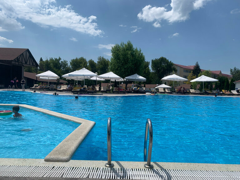 Только что вернулись и уже скучаем) Дача — лучший отель Анапы. Отдыхали две недели, все понравилось. Спасибо всему персоналу, особенно управляющей Екатерине. Территория отеля зелёная, ухоженная. Наш уютный увитый диким виноградом был прям возле бассейна, огромный, двухкомнатный, с двумя ванными комнатами. Уборка и смена полотенец ежедневная. Пляжные полотенца каждое утро клали на террасу, как и воду в бутылочках. Бассейн чистый, тёплый, работает спасатель. Аниматоры Настя, Саша и Никита завоевали сердца наших детей. В ресторане все очень вкусно, разнообразно и качественно. Спелые фрукты. В баре возле бассейна тоже можно перекусить: соки, фрукты, выпечка, бутерброды. Пляж отличный, чистый, народу мало, спасатели на месте. Работает бар, можно перекусить пиццей, шаурмой, хот-догом, орешки, мороженное, фрукты и напитки на любой вкус.