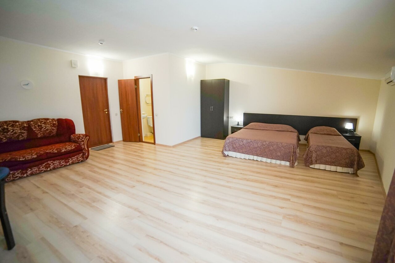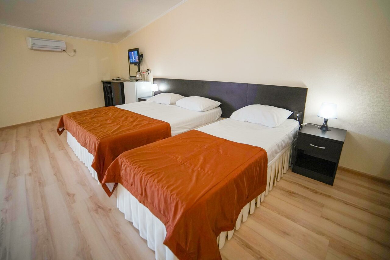 Отель очень хорошего качества . Звезду снизил лишь за отсутствие полного пансиона и прямого подъезда на такси к отелю . Номера достаточно просторные , чистые . Уборка каждый день . Минусов не искал , приехал отдыхать а не заморачиваться . Очень отзывчивый персонал на ресепшн и в столовой . Отдельное им спасибо !!! Молодцы . Кухня очень хорошего качества ( в отеле столовая — питание за деньги ) . Есть с чем сравнить ! Еда домашняя и всегда разное меню цена в день около 600-700 рублей на взрослого мужика . Я не имею ввиду пережирание — простите за грубость . До моря по песку 100 метров . Своего пляжа к сожалению нет . Возможно администрация отеля это исправит . Есть детская анимация . Все очень достойно . Цена качество на высоте !!! Рекомендую .