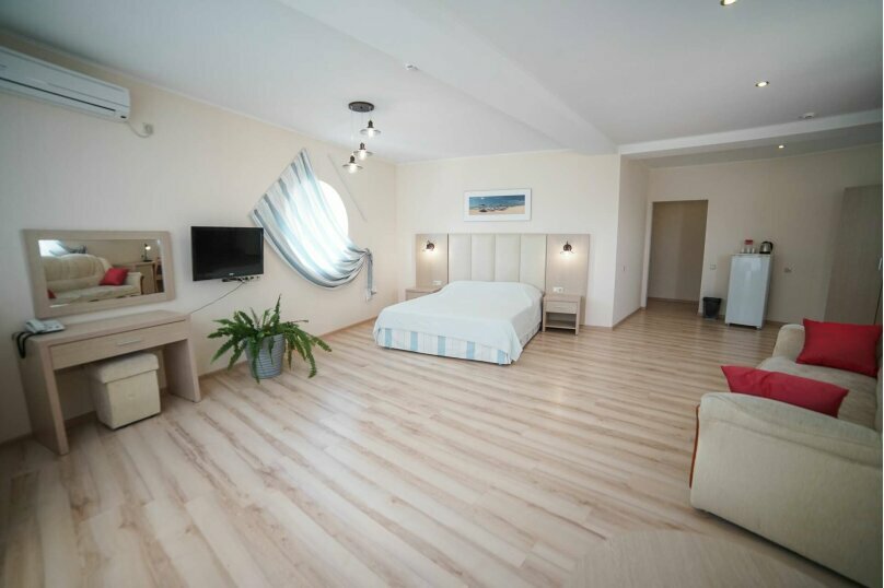 Отличный небольшой отель, есть всё для комфортного отдыха. Море в 2 минутах. На пляже нет огромного количества людей как в Анапе. Магазины в 10 минутах. Есть столовая, бассейн, парковка, в номере кондиционер. Плюс — огромный балкон, на котором классно ужинать поздно вечером. Только приятные впечатления от данного отеля