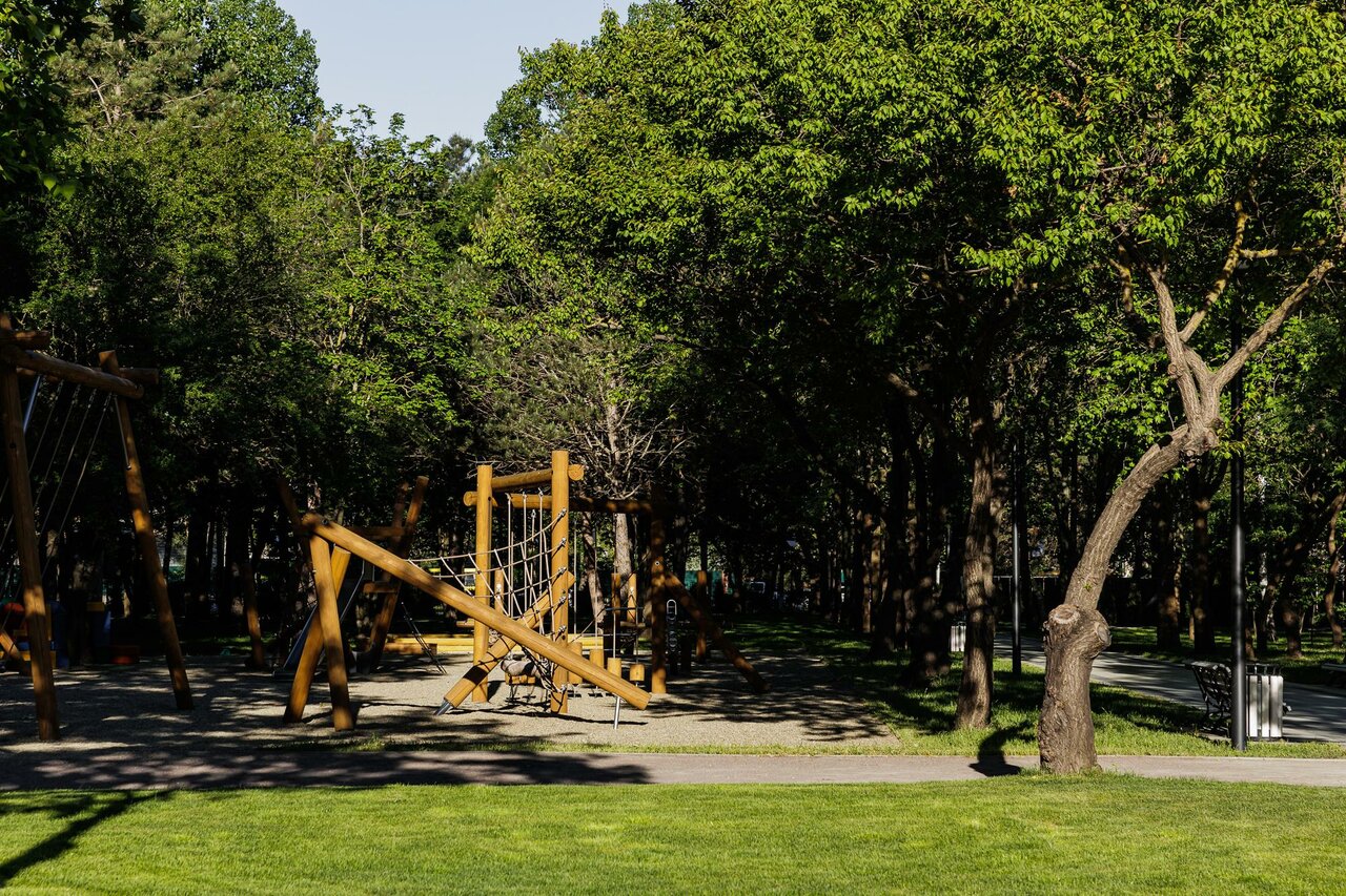 - Большая и ухоженная зелёная территория.