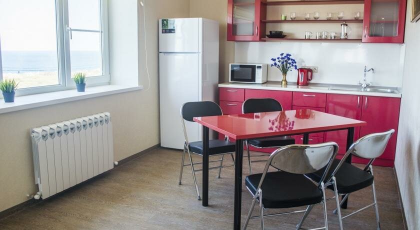 Удобства: — Номера от 4000 ₽/ночь с кондиционером, Wi-Fi, ТВ, санузлом и кухонными уголками. — Открытый подогреваемый бассейн (сезонный), детский бассейн, летняя веранда. — Бесплатная парковка, велопарковка, детская площадка, игровая комната. — Проживание с животными (платно), заселение с детьми (бесплатные кровати для малышей). — Общая кухня, столовая, терраса, шезлонги, пляжные полотенца (пляж — галька).