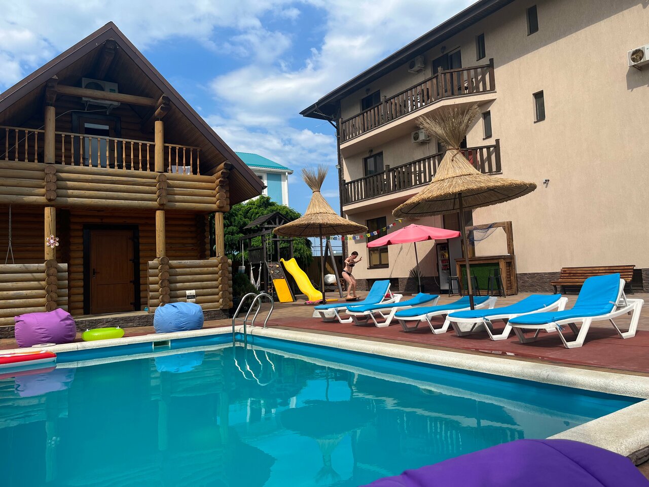Отличный отель. Очень отзывчивые обслуживающий персонал и владелец ! Бассейн с подогревом, детский батут, настольный теннис, дартс, детская площадка, спортивные тренажеры. Всегда можно воспользоваться большой кухней и мангальной зоной на которых имеются все принадлежности . Всё в пешей доступности , пляж, рынок , столовые, магазины итд.