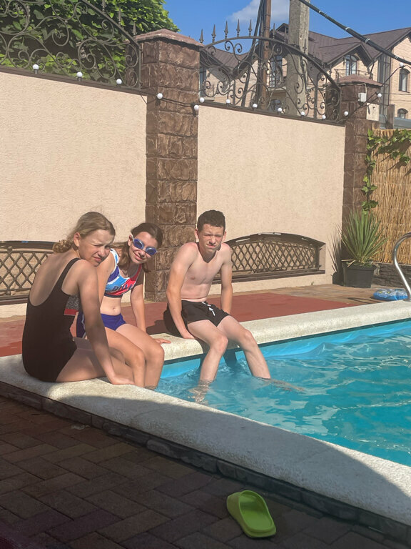 Отдыхали всей семьёй: 2 взрослых, два ребёнка с 7 по 18 июля. Были приятно удивлены, что всё соответствовало описанию и фотографиям. Всё чисто, аккуратно, ухожено. Соглашусь с предыдущими отзывами: большая просторная общая кухня, замечательная территория: есть столики на улице под акациями, мангальная зона, для детей есть городок с горкой, батут, самокаты, велосипеды, гамаки и много всякого интересного. Бассейн порадовал особенно: Виктор постоянно следит за его чистотой. Он очень внимательно и с участием относится ко всем посетителям, а особенно детям.