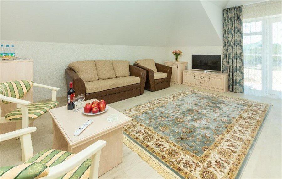 На территории: бесплатная парковка, детская площадка, терраса, шезлонги, зонтики. Уборка, доставка еды в номер, прачечная и посуда в наличии. Дата постройки — 2016 год, реконструкция проведена в 2022.